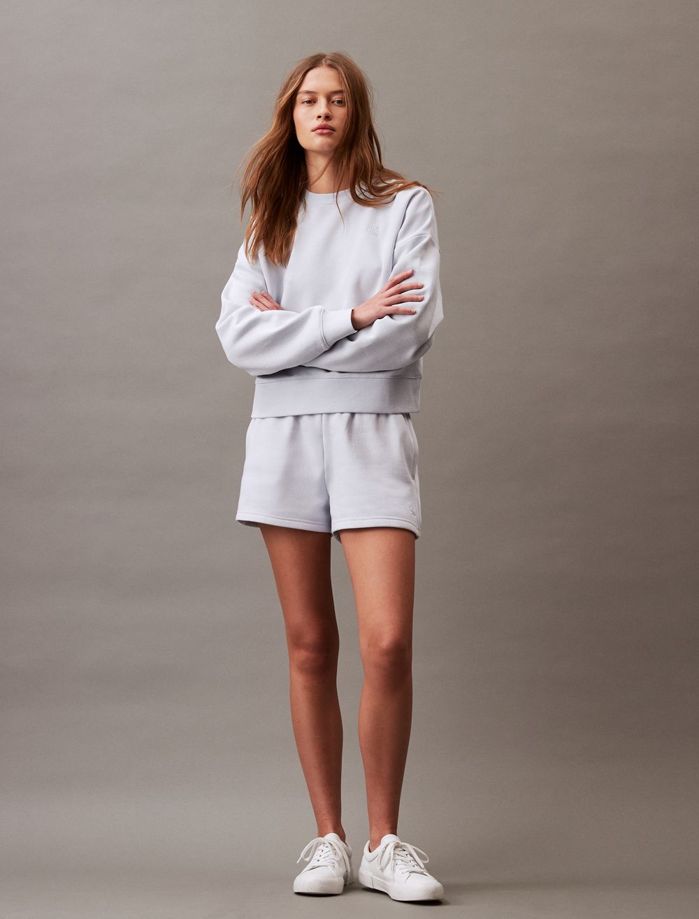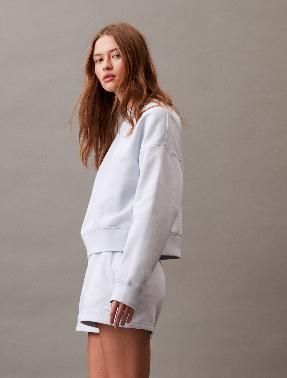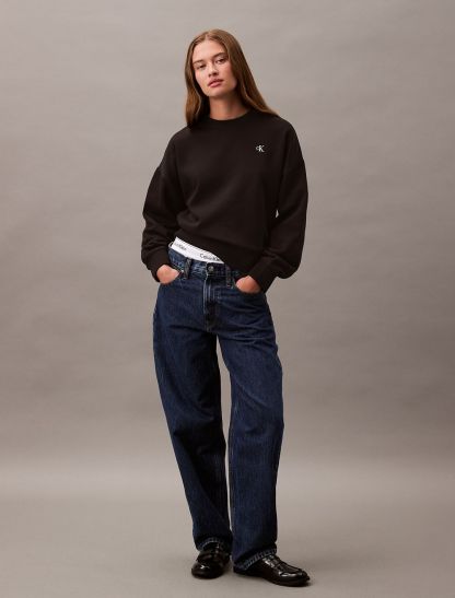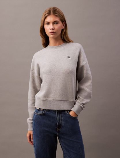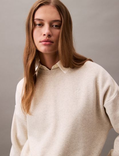 Crafted from soft cotton blend fleece, this crewneck sweatshirt offers exceptional comfort with added warmth. Styled with long sleeves and designed with drop shoulders for a relaxed fit. Finished with archive-inspired logo embroidery at the upper chest.- Cropped length