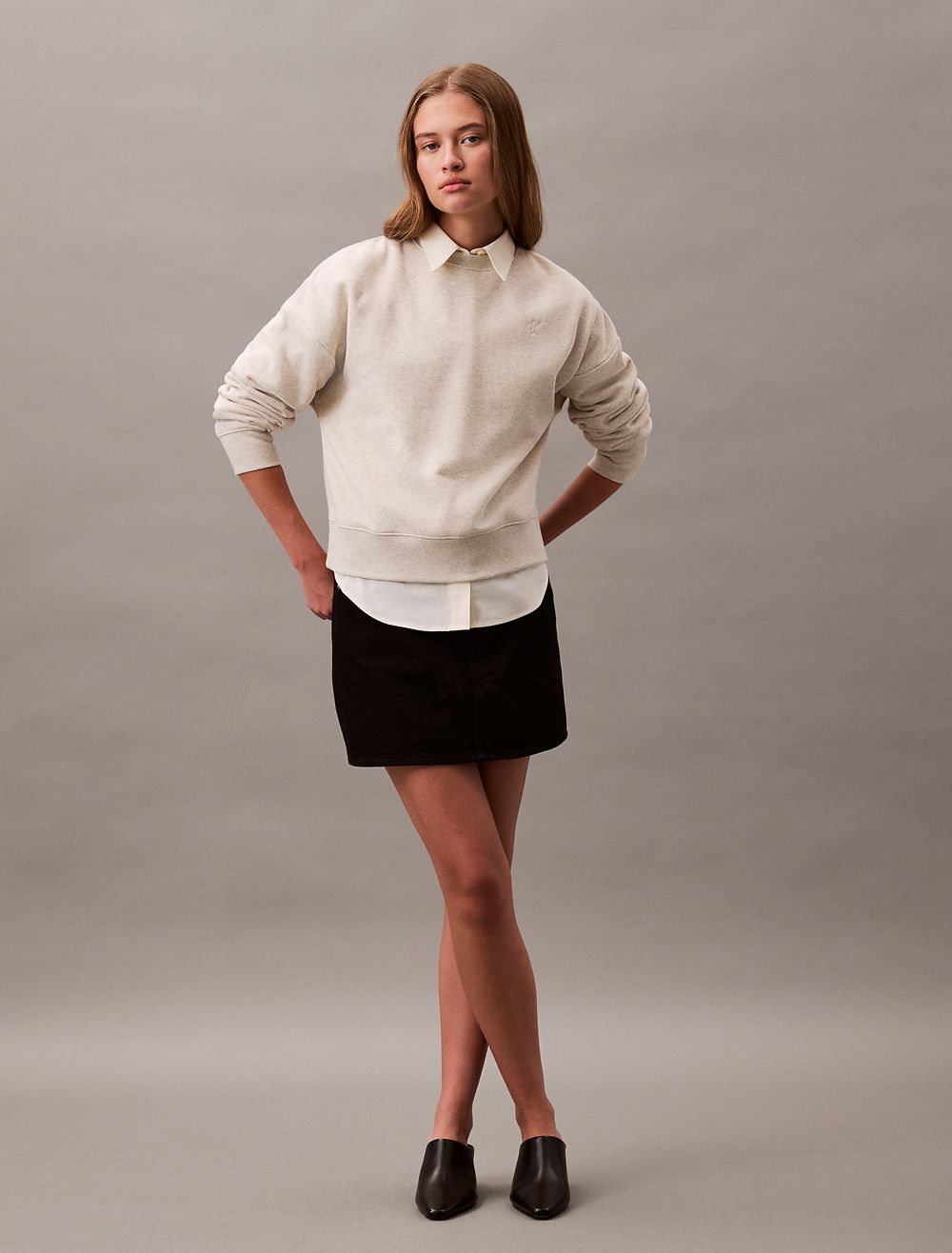 - Long sleeves + crewneck