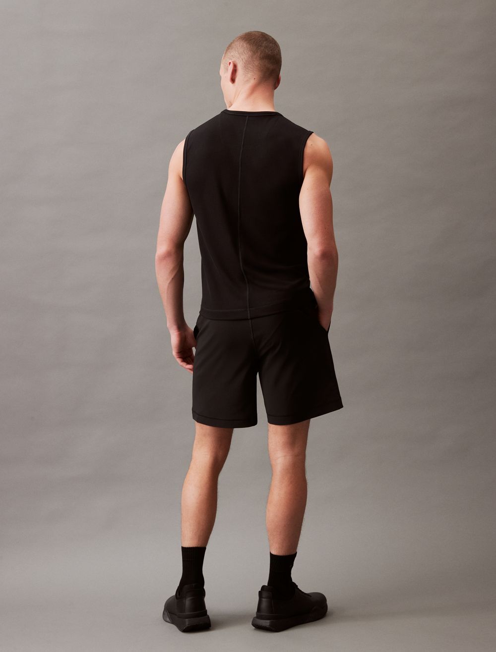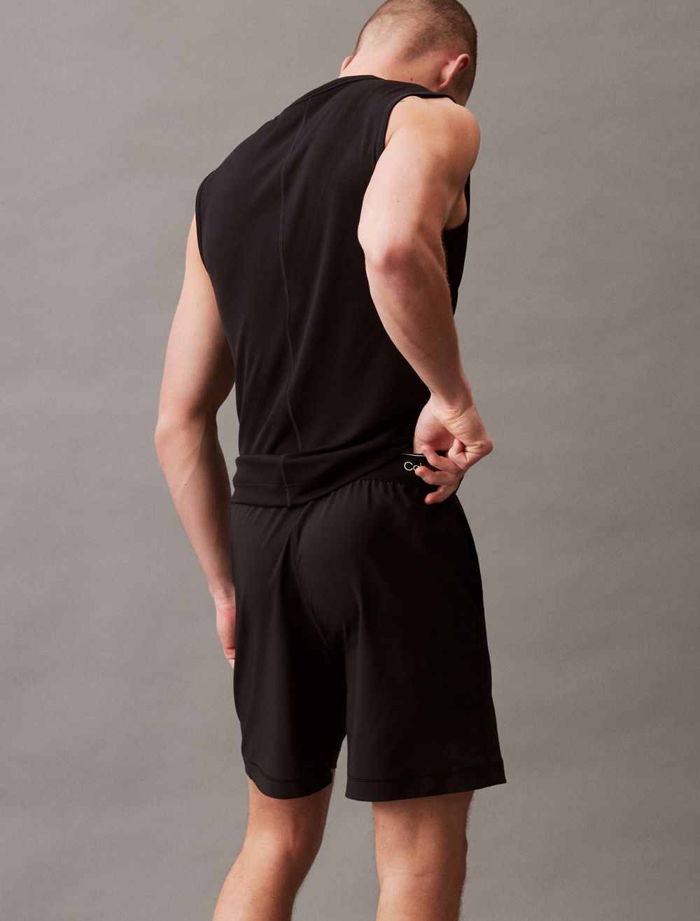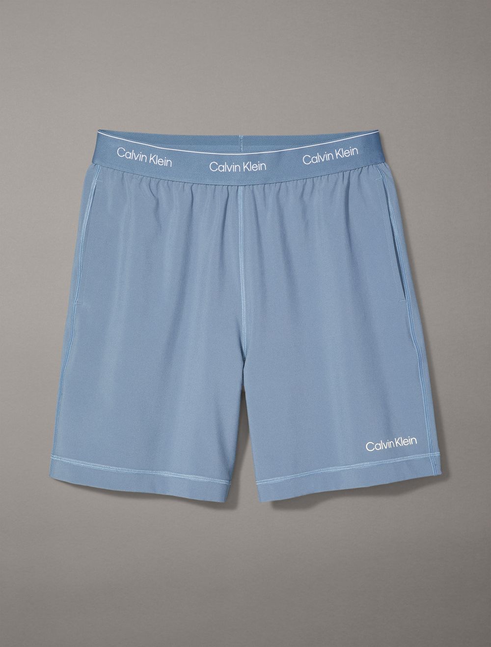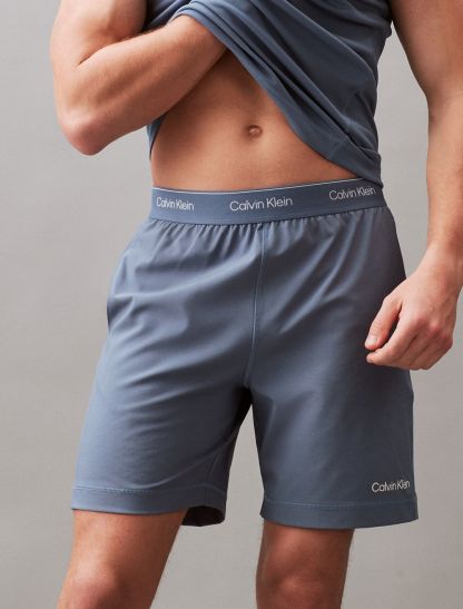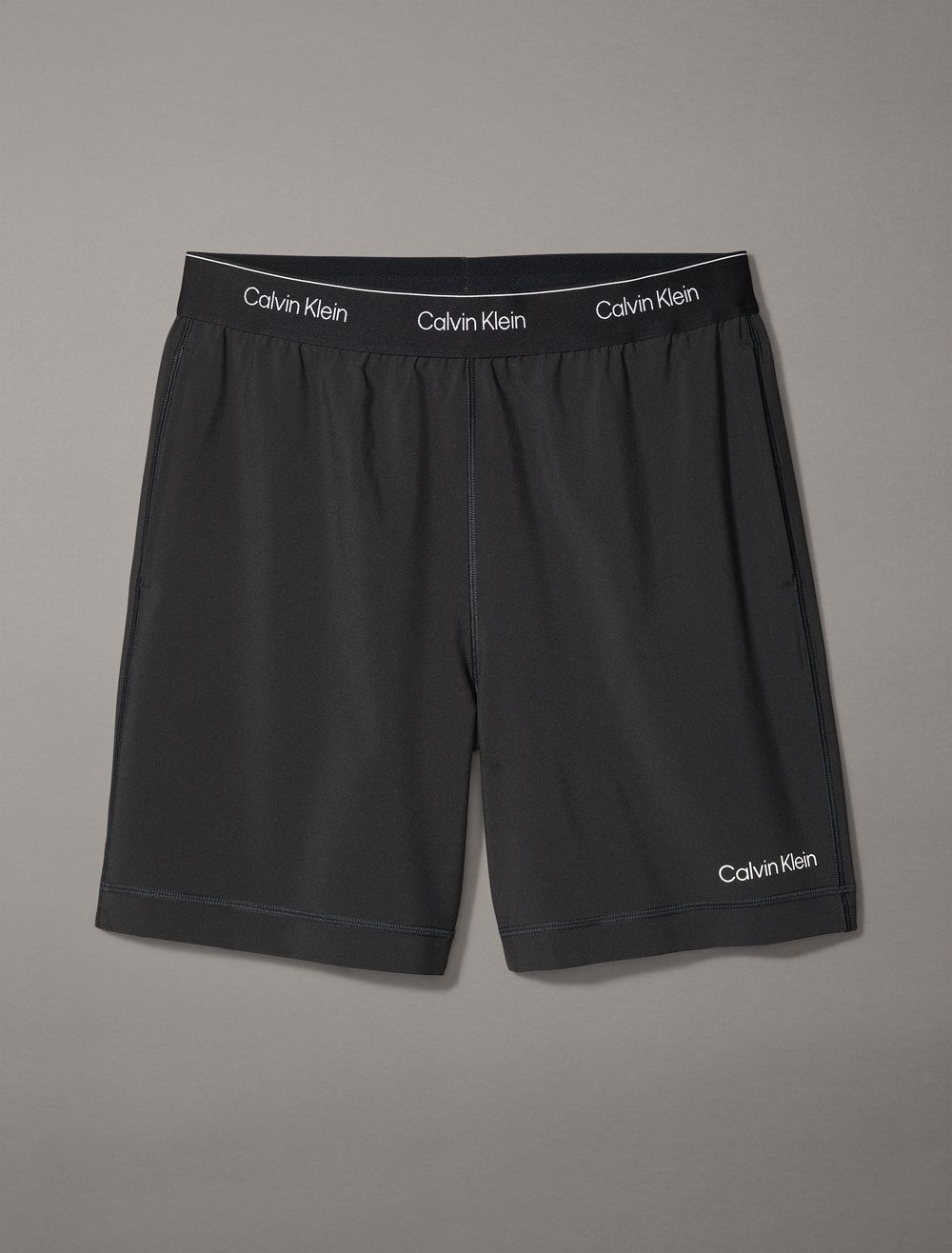 Featuring minimal, solid styling, these shorts are constructed from moisture-wicking fabric for total comfort and breathability during workouts. Created with an elastic waistband and designed with slip pockets at both sides. Finished with Calvin Klein logo styling near the hem and repeating logos at the waist.- Moisture wicking fabric to keep you cool + dry