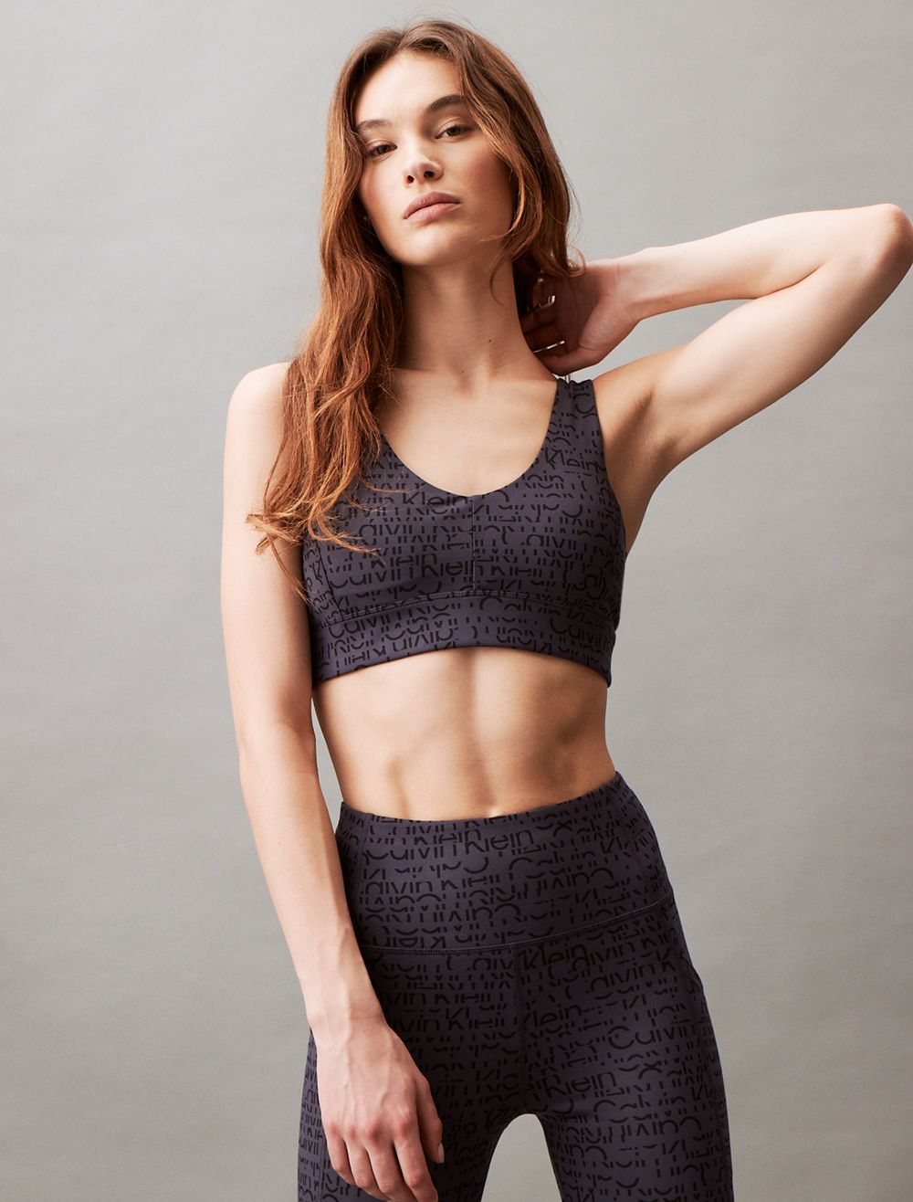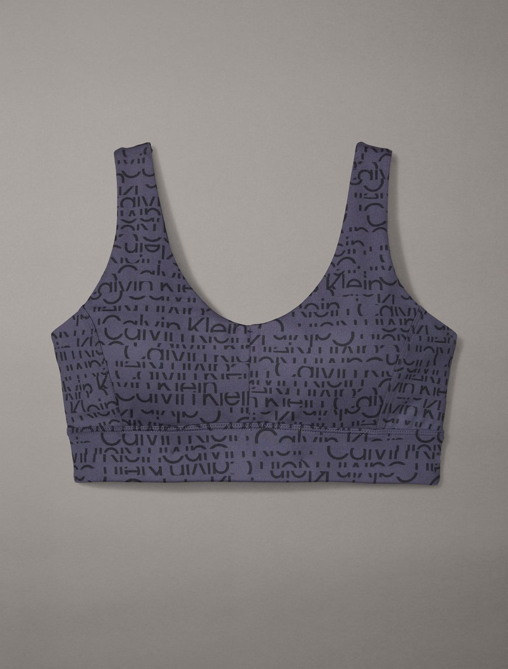 Designed with 4-way stretch for total flexibility, this performance sports bra delivers light support for low impact workouts. Styled with a V-neckline and cut in a fitted silhouette that shapes to your form. Made with a smooth hand and features allover CK logo styling.- 4-way stretch fabric for maximum activewear comfort
