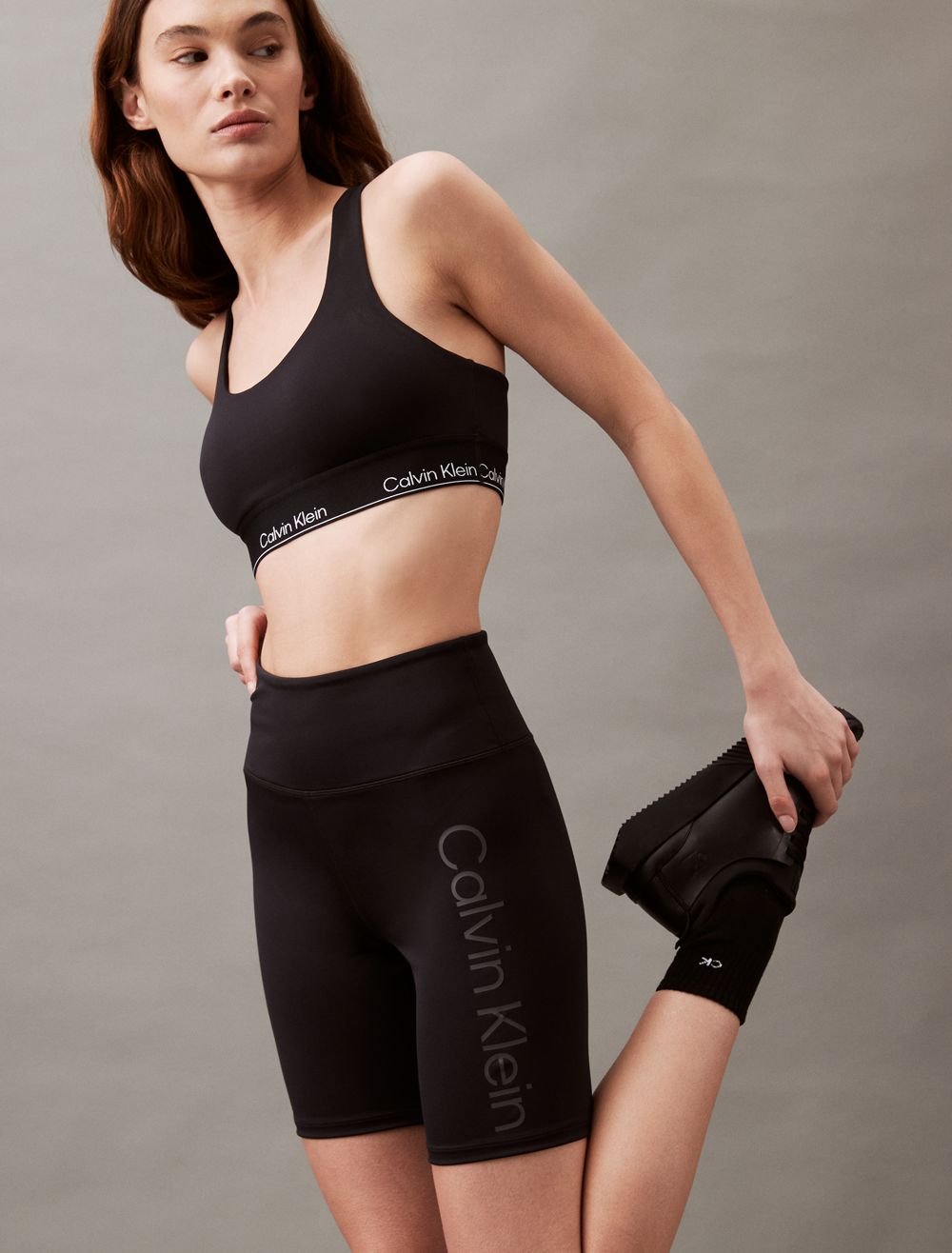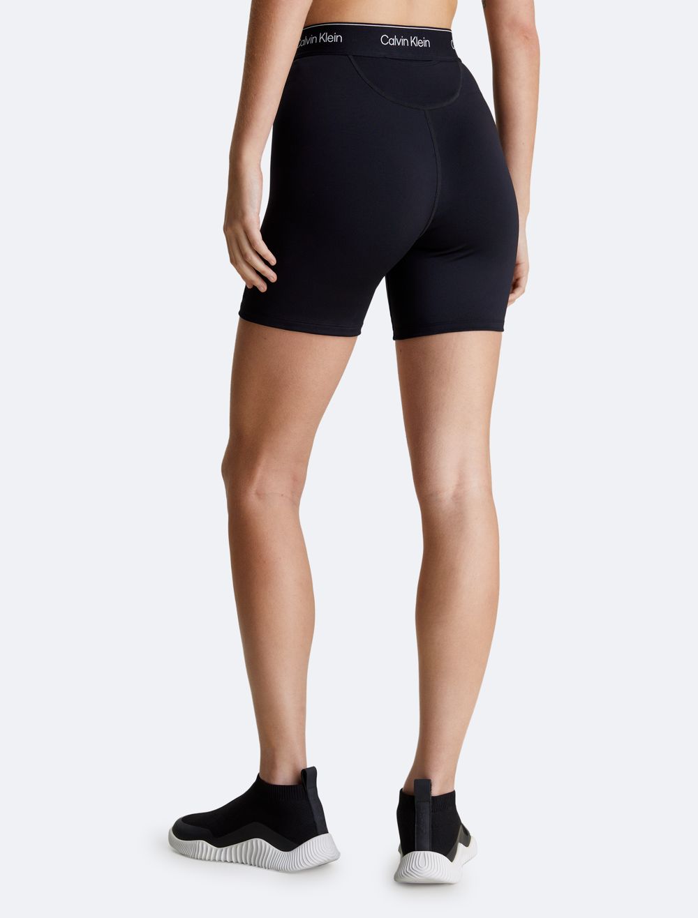 Featuring minimal, solid styling, these shorts are constructed from moisture-wicking fabric for total comfort and breathability during workouts. Created with high rise waist and a slim, fitted silhouette. Designed with an elastic waistband and tonal CK logo styling at the upper leg.- Moisture wicking fabric to keep you cool + dry
