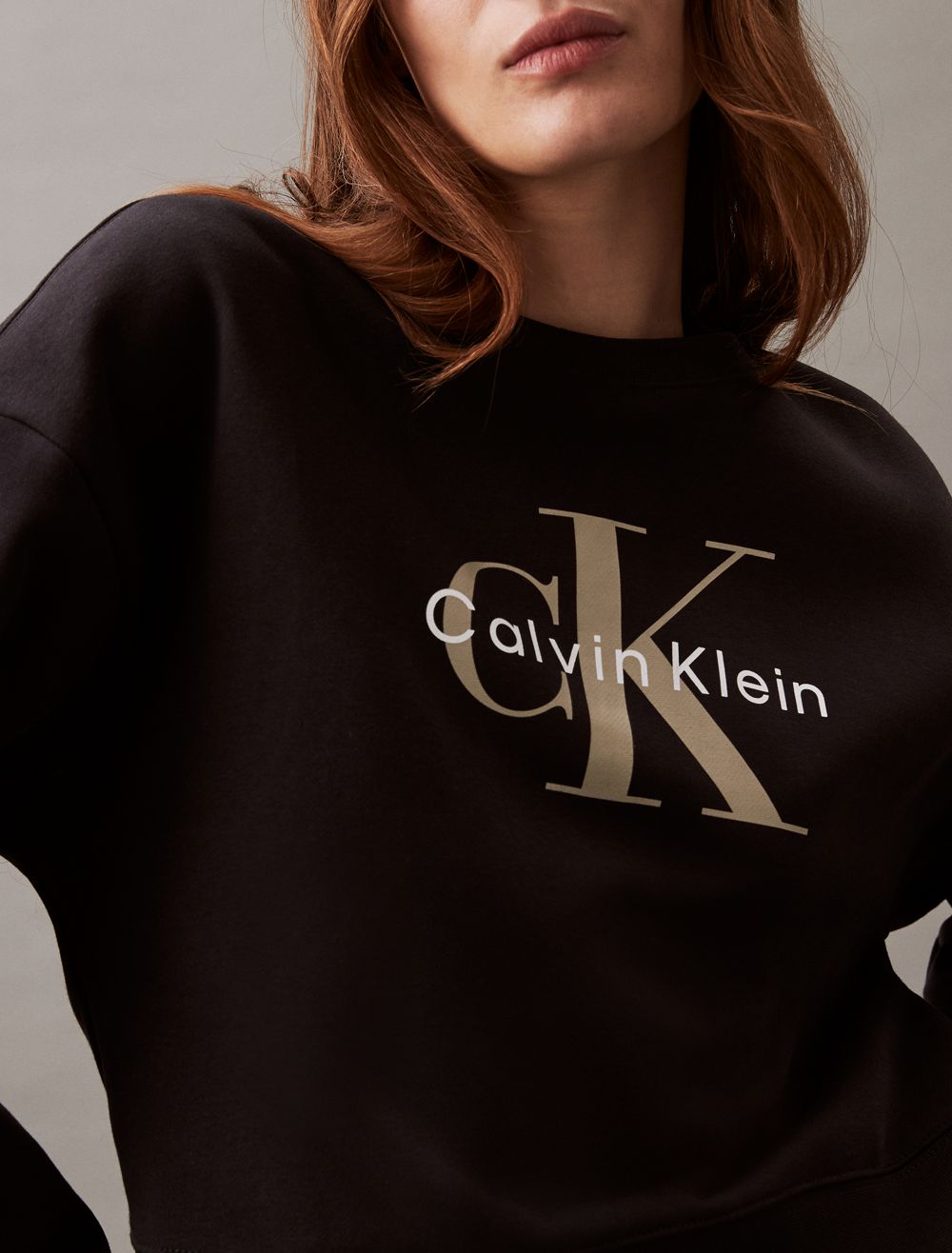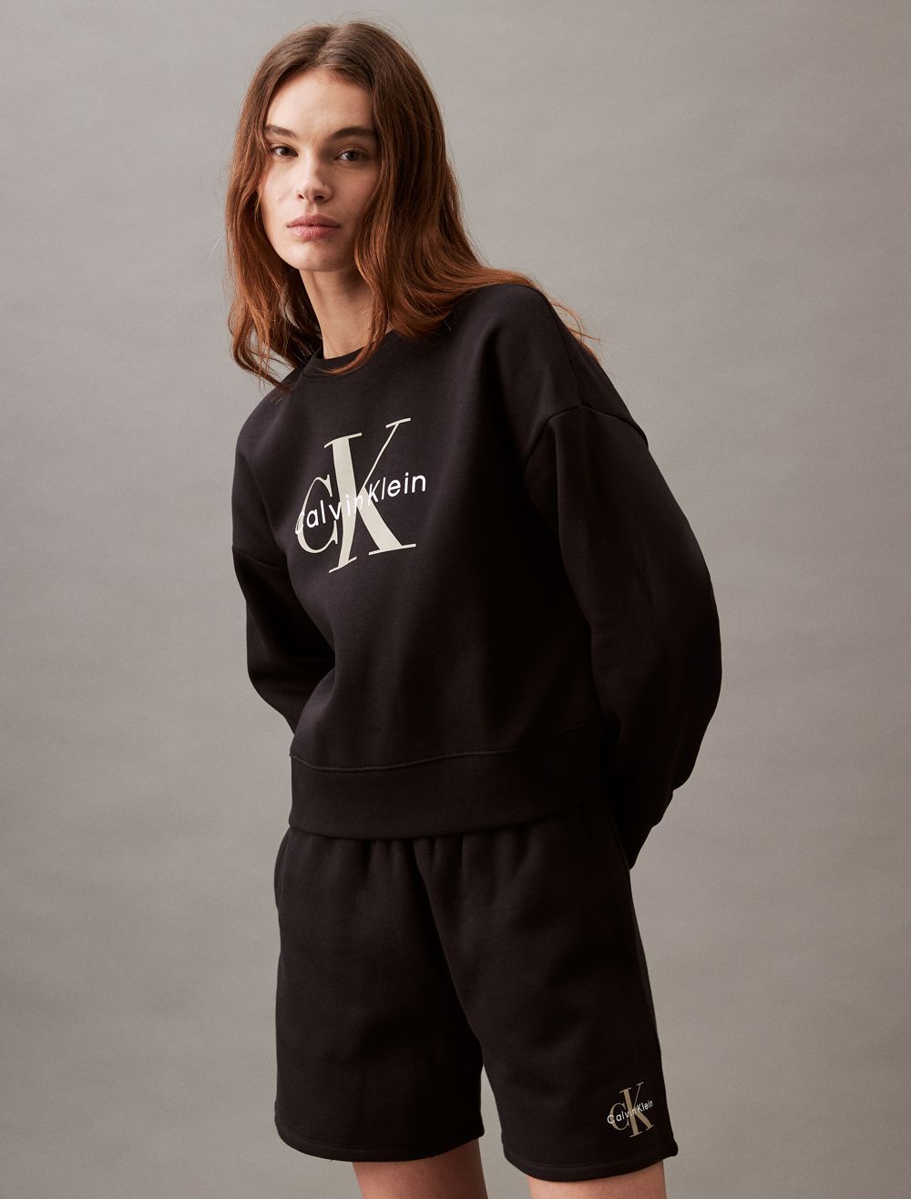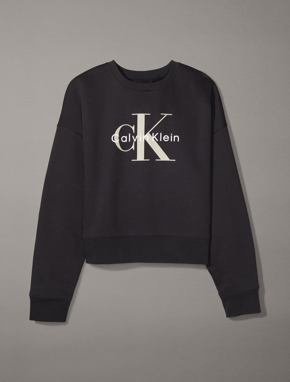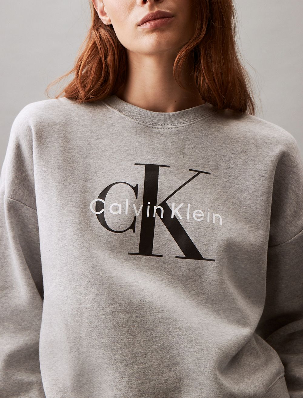 Styled in an relaxed silhouette, this crewneck sweatshirt is made with drop shoulders for an effortless fit. Crafted from a cotton fleece blend for soft, plush comfort. Detailed with banded cuffs at the sleeve openings and features a CK monogram logo design at the front.- Fleece cotton knit blend for premium comfort