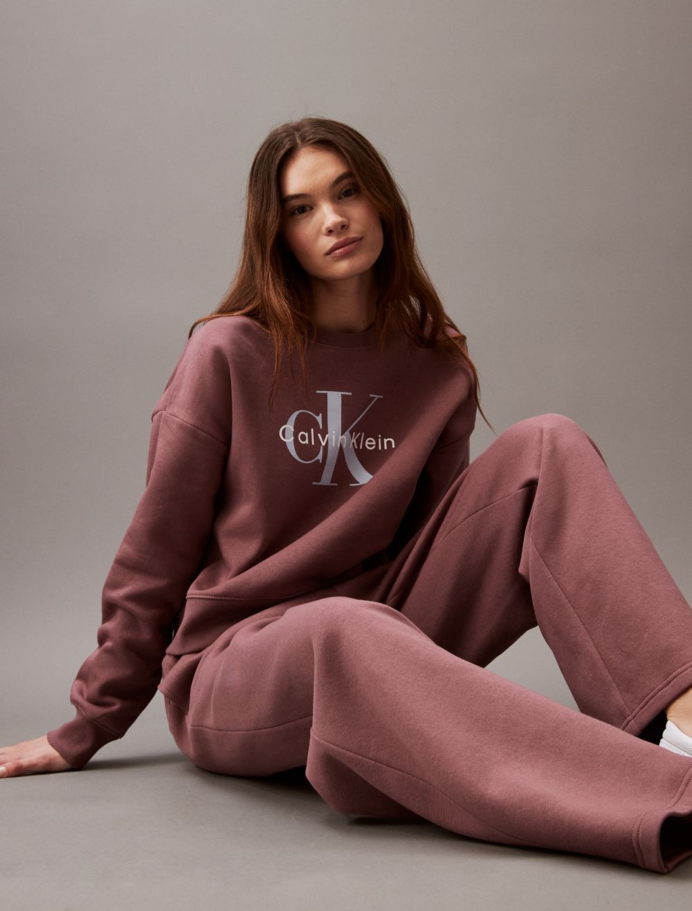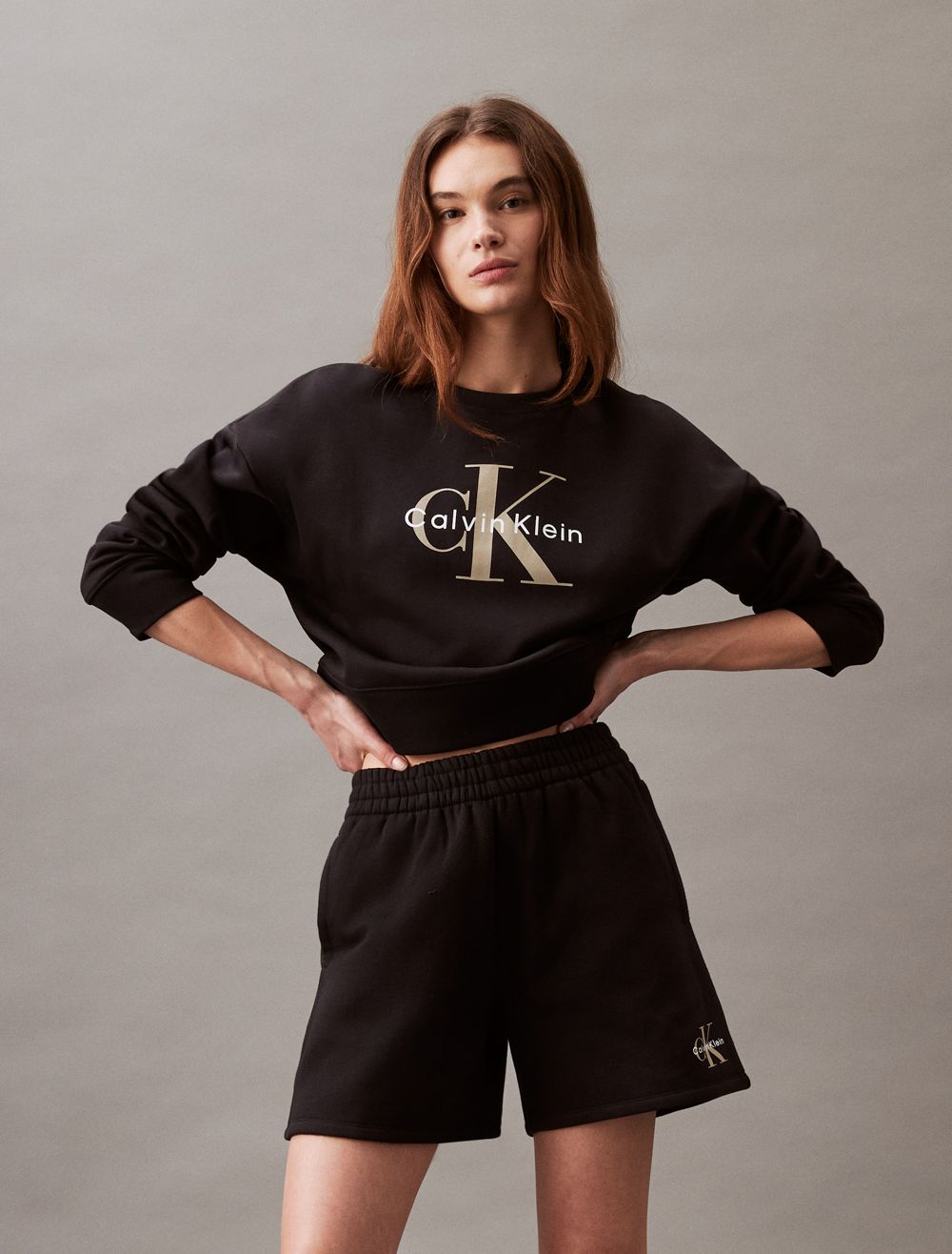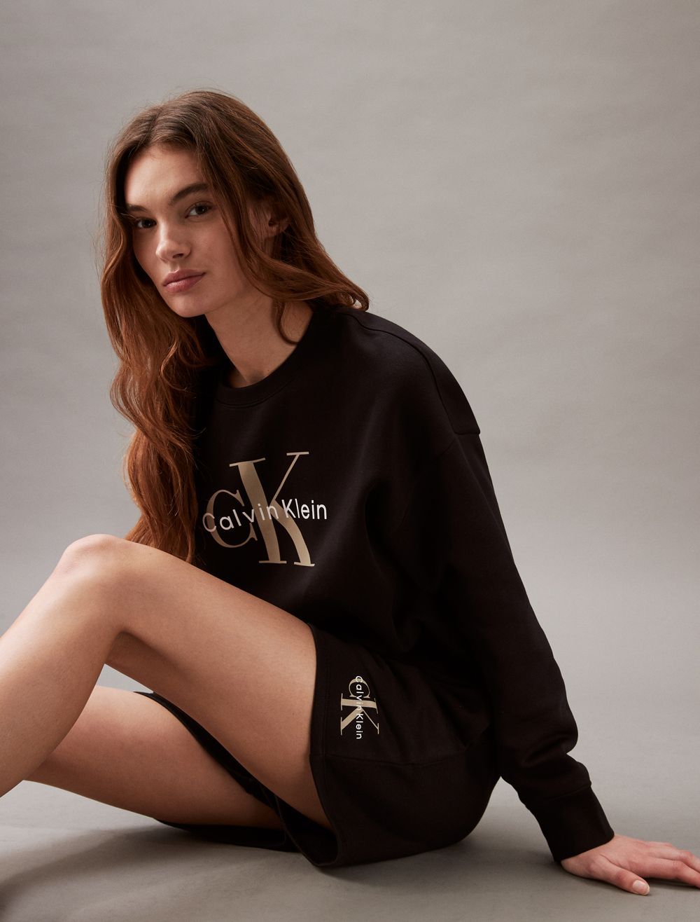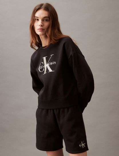 Styled in an relaxed silhouette, this crewneck sweatshirt is made with drop shoulders for an effortless fit. Crafted from a cotton fleece blend for soft, plush comfort. Detailed with banded cuffs at the sleeve openings and features a CK monogram logo design at the front.- Fleece cotton knit blend for premium comfort