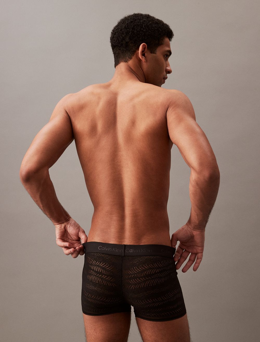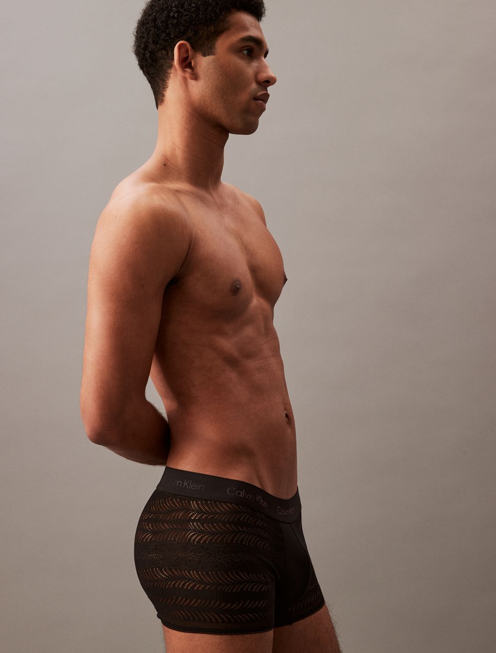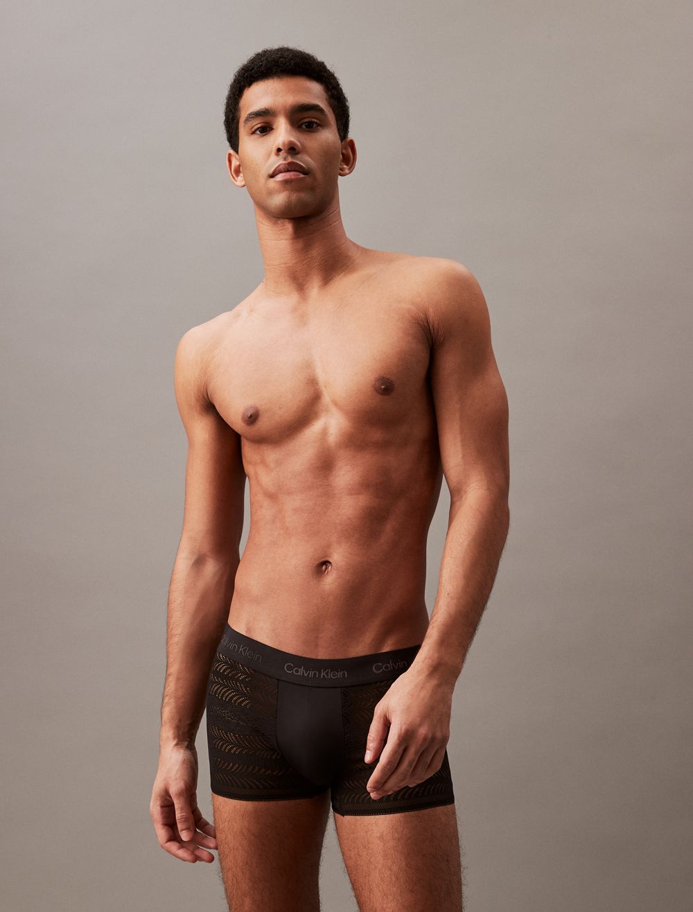 Cut from smooth microfiber, this low rise trunk has a sleek, fitted silhouette and features galloon lace for lightweight styling. Created with a tonal elastic logo waistband and a supportive pouch for a comfortable fit.- Soft lace detailing in recycled microfiber nylon stretch