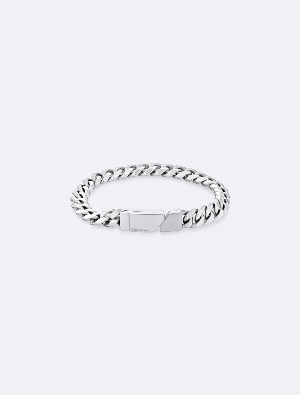 This link bracelet features a brushed ID tag detailed with an off-center asymmetric cutout. Made with a magnetic closure.- Link chain bracelet
