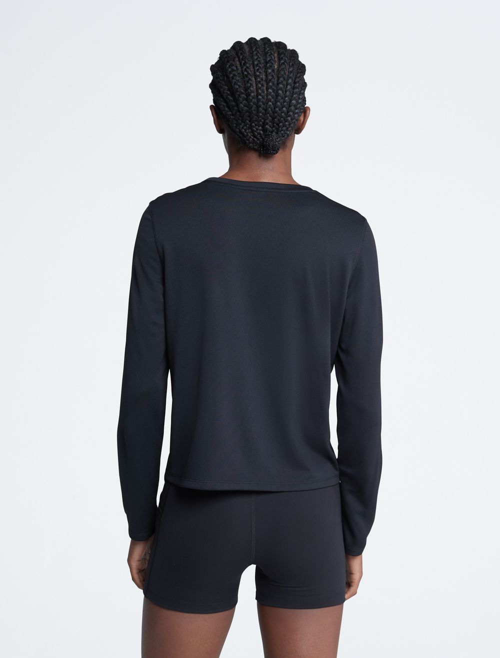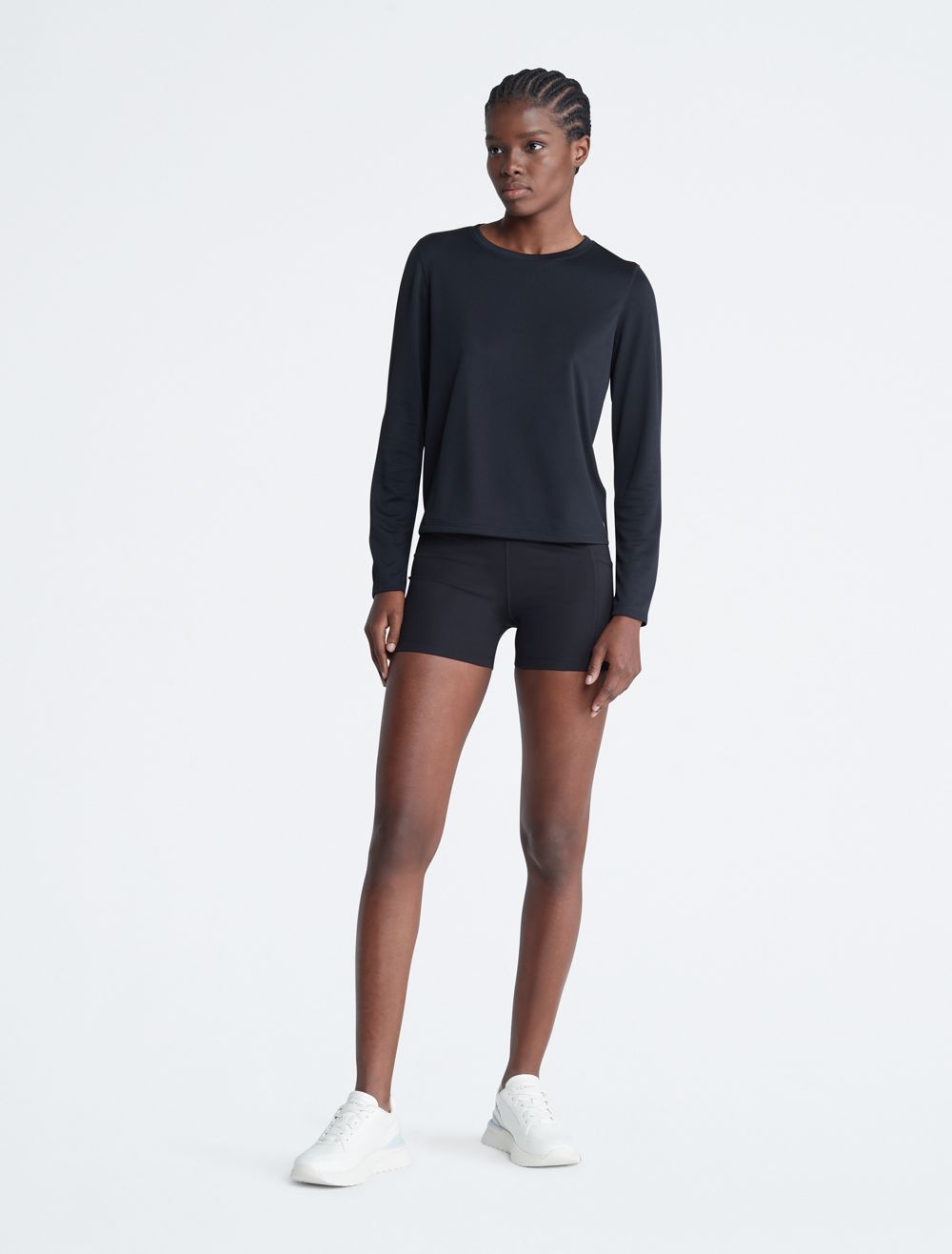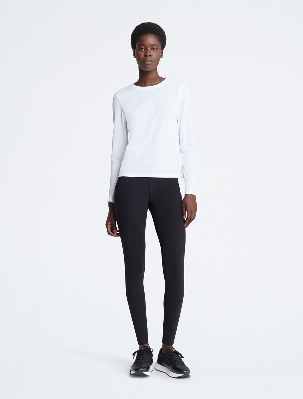 Created for limitless movement, this performance-ready t-shirt features a textured pique design. Made with long sleeves and a crewneck. Finished with a CK monogram logo detail near the hem.- Technical knit fabric with a shiny look
