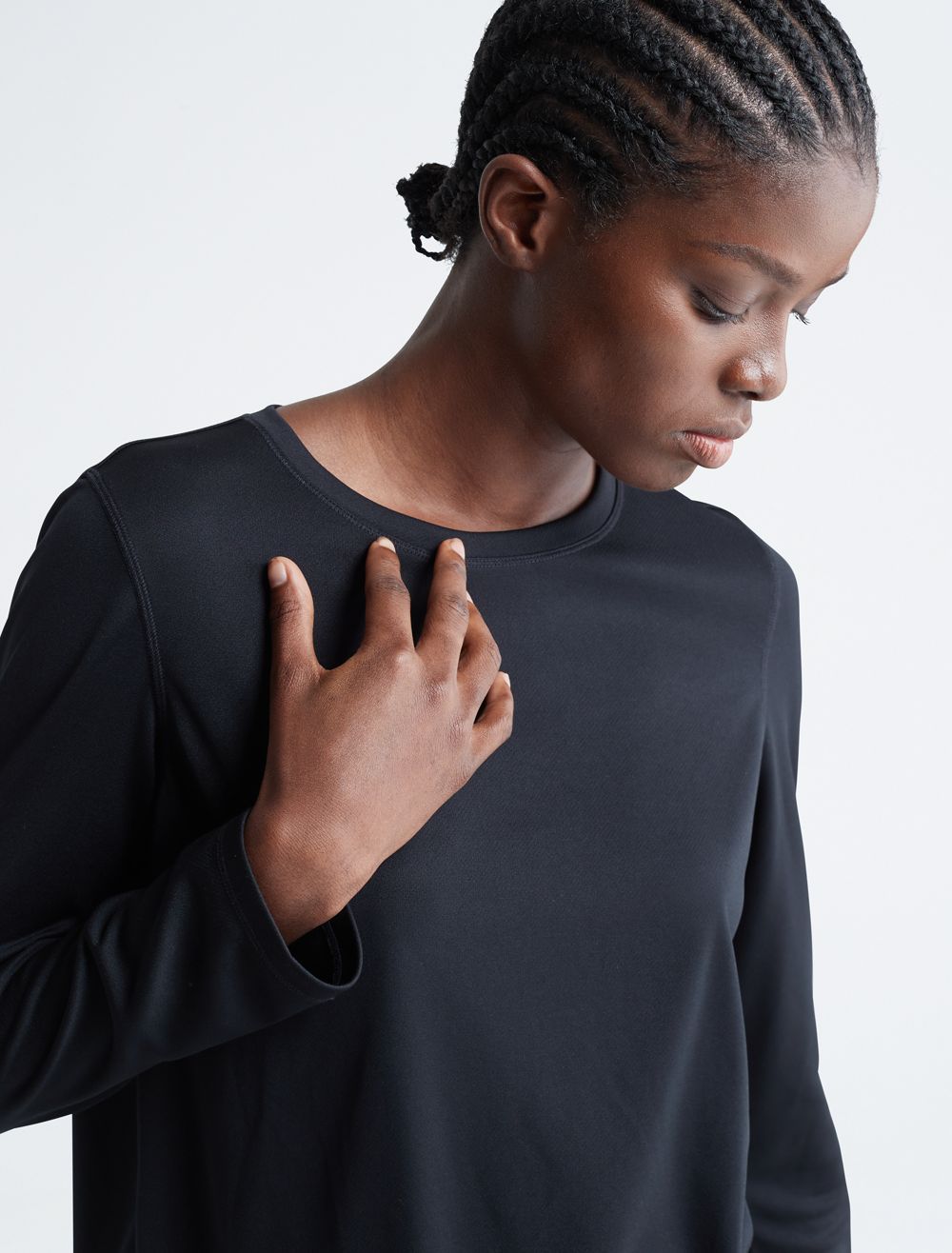 - Long sleeves + crewneck