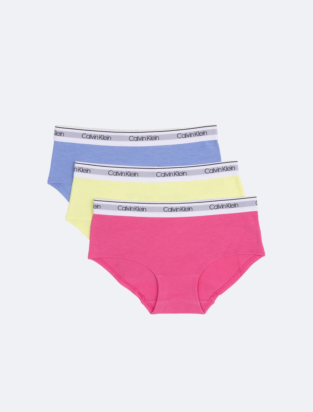 Created for total comfort, these modern cotton girls hipsters come in a 3-pack and feature a solid, tonal styling with a repeating logo elasticated band.- Solid, tonal styling