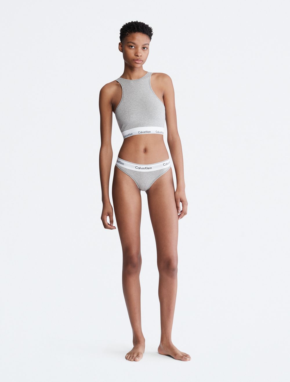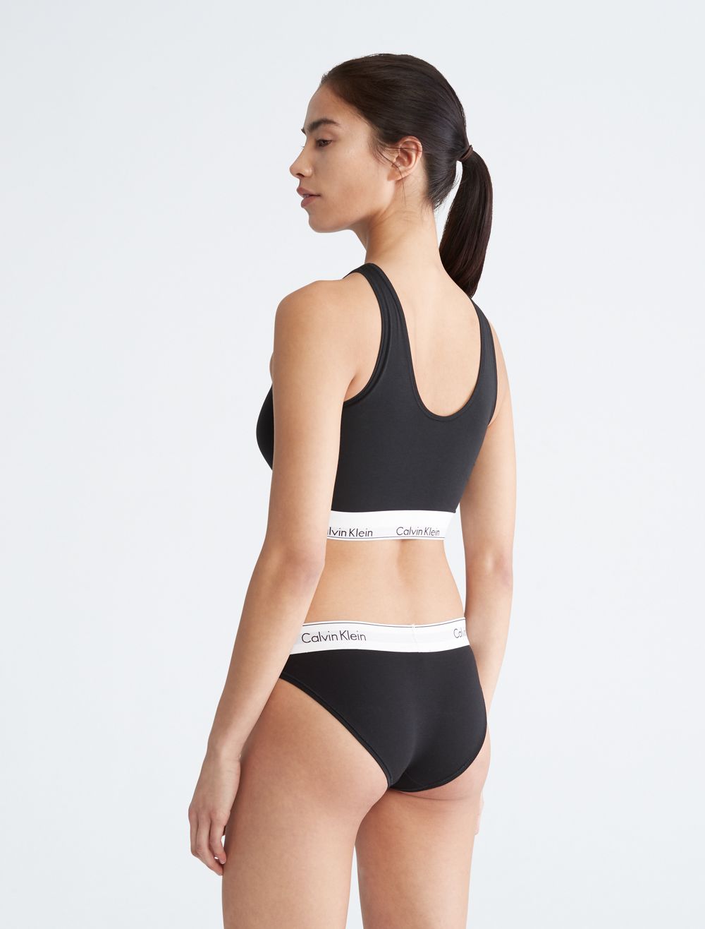 A CK icon, refreshed with a high neck and a deep u-shape back. This modern cotton longline bralette is made with super soft and supple cotton stretch blended with modal for all day comfort. Designed with the original CK logo band, this is a sporty look that feels sexy everyday. Pairs well with Modern Cotton Bikini, Modern Cotton Thong, and Modern Cotton High Waist Bikini.- Unlined cups for a natural look and a lightweight, breathable feel.