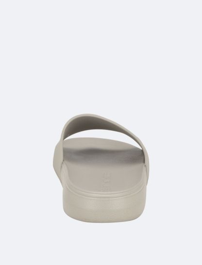 Designed with an embossed CK monogram logo at the top, these slides are a comfortable style that slips-on for effortless wear. Made with an open toe and a cushioned sole for added comfort. Finished with Calvin Klein logo styling at the footbed.- Slips-on