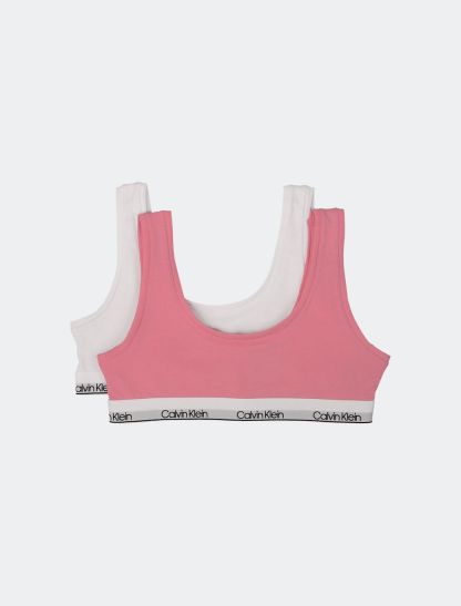 Crafted with cotton modal stretch, these modern cotton girls bras come in a 2-pack and feature a scoopneck, a u-back and a repeating logo elasticated band.- Cotton modal stretch