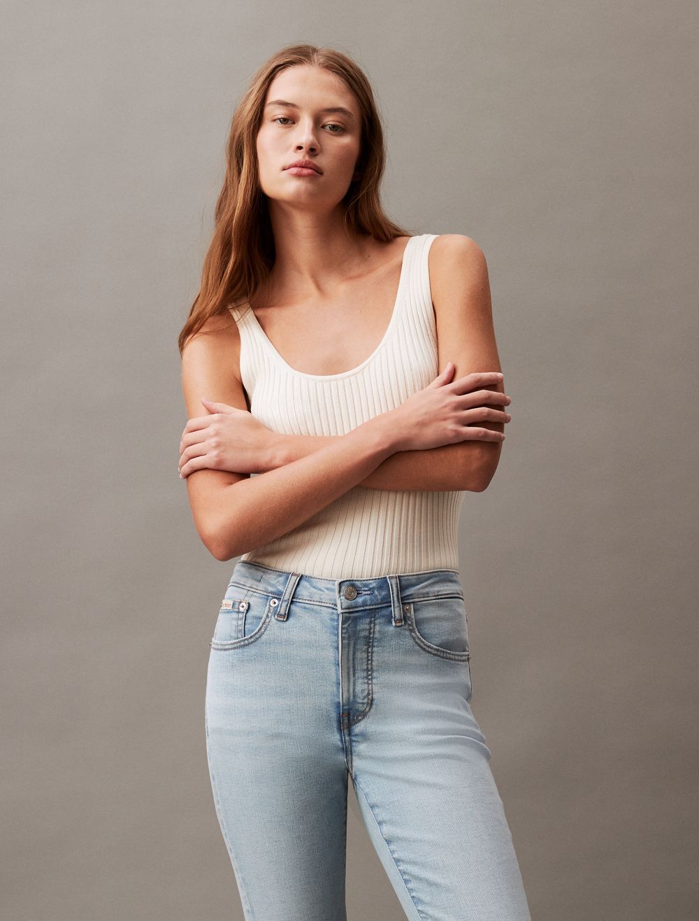 - CK heritage inspired metal shank and zip fly