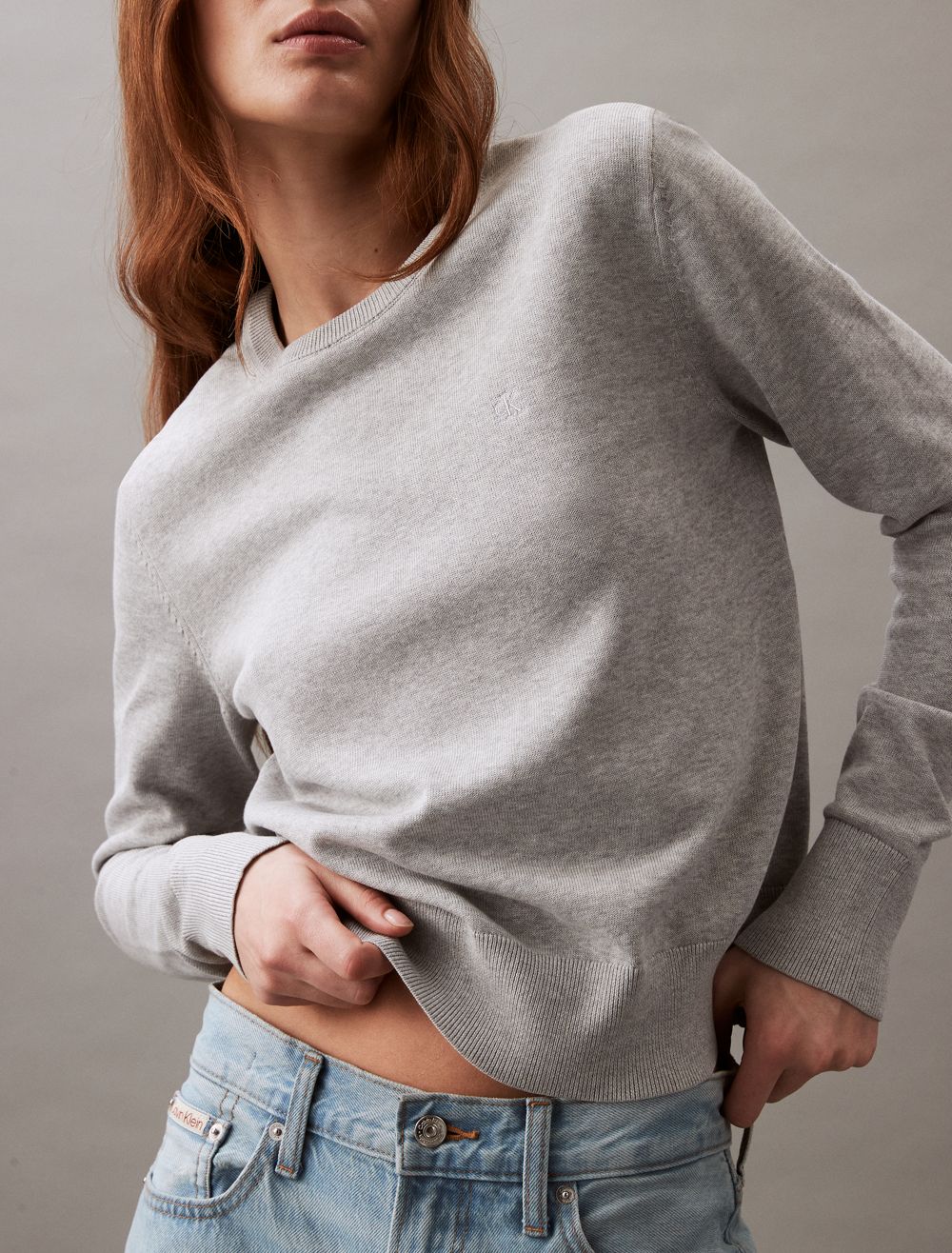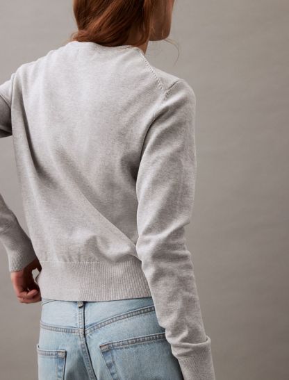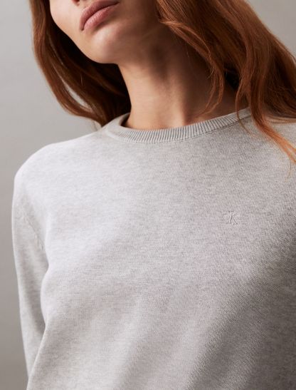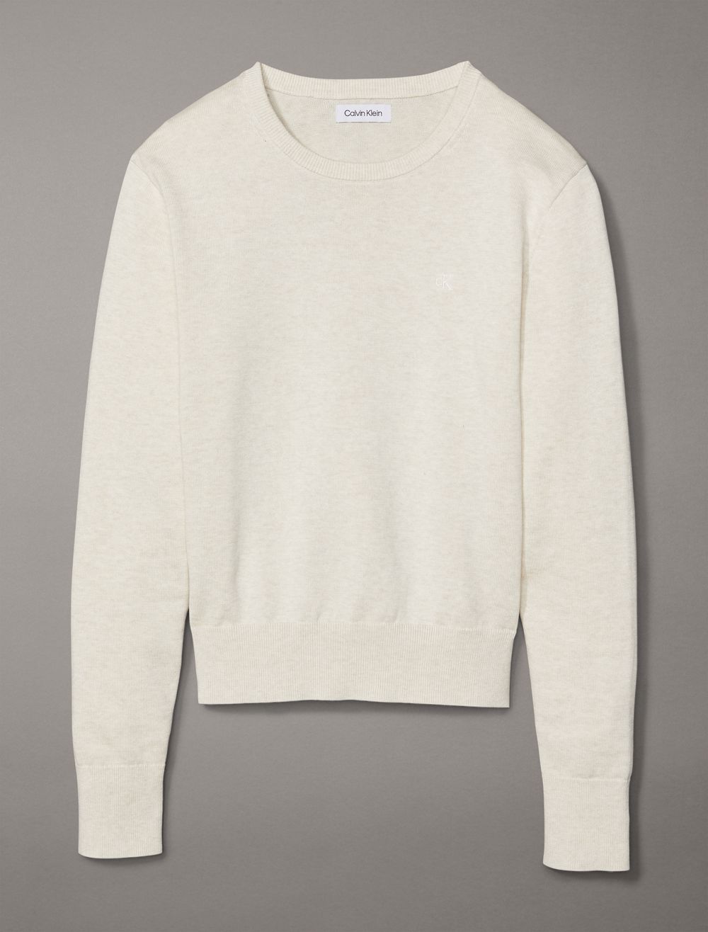 Crafted completely from compact cotton, this sweater is designed for comfortable, everyday wear. Made with long sleeves and features ribbed styling along the neckline and the hem. Finished with CK monogram logo embroidery at the upper chest.- Long sleeves + crewneck