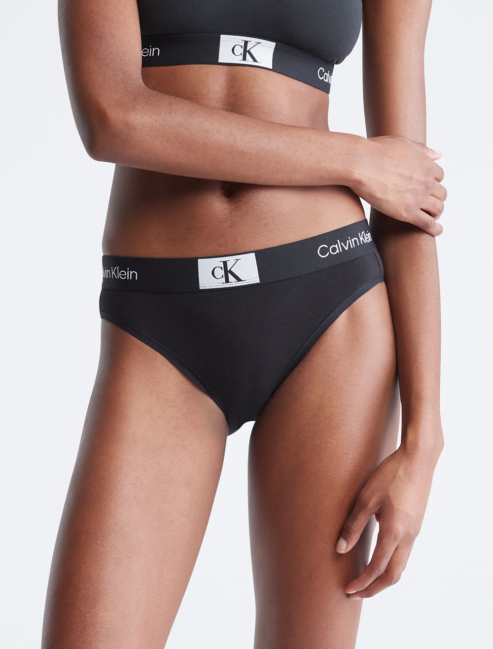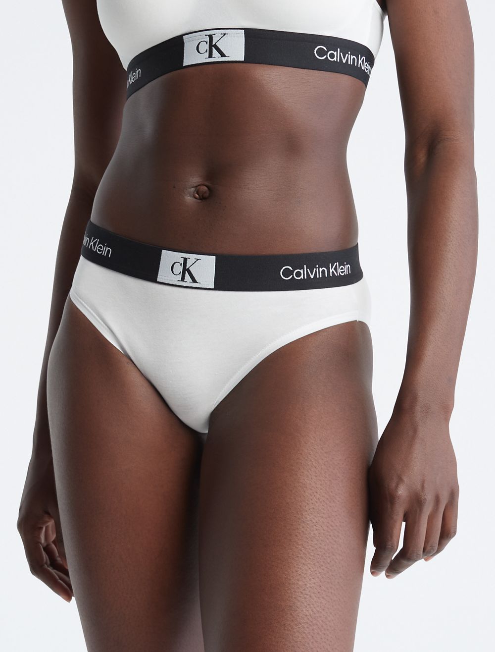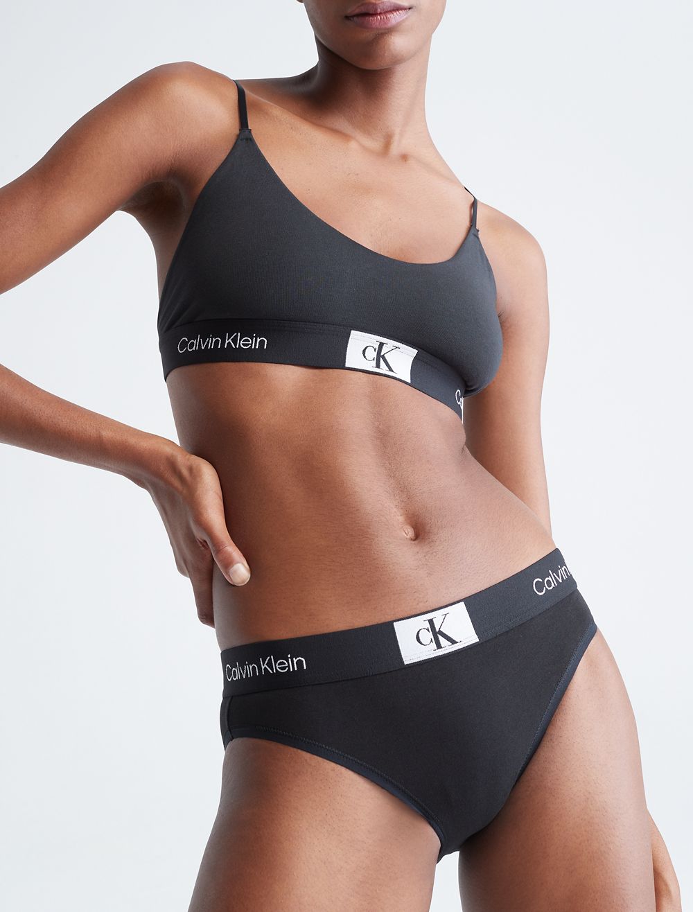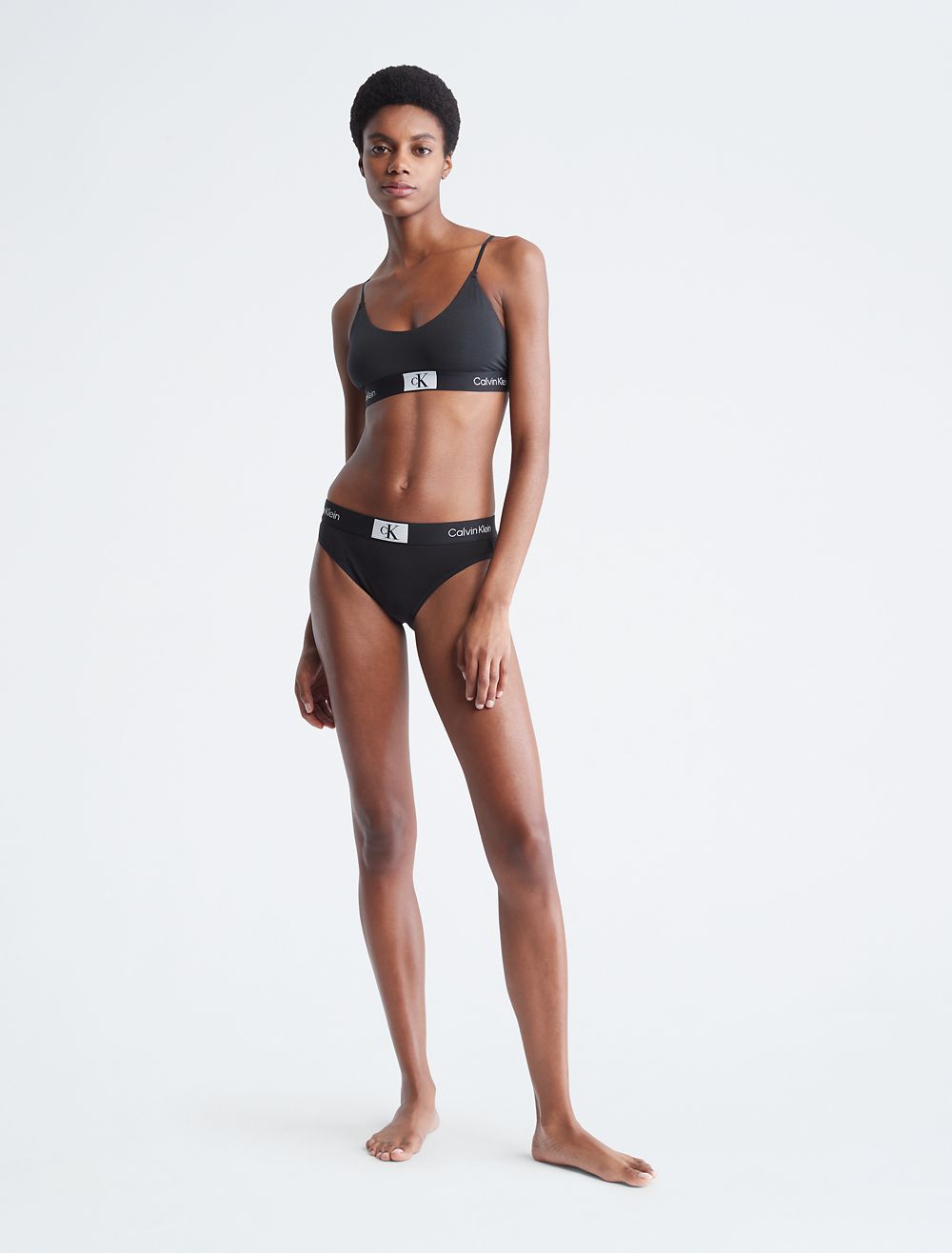 Amplified classics, CK 1996 is a vibrant logo story featuring our iconic monogram framed in a box. A new approach to print and color with a distinct graphic language. This modern bikini is designed with a recycled cotton stretch blend and repeating classic logos.- Blended with recycled cotton for a sustainable design