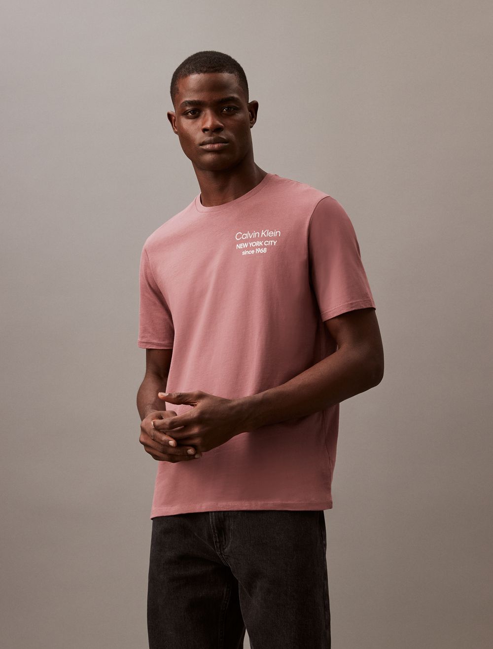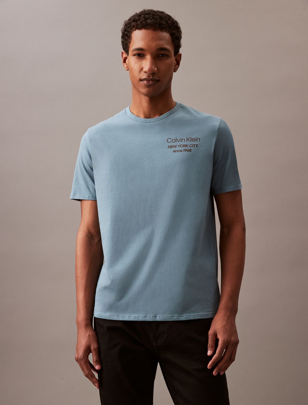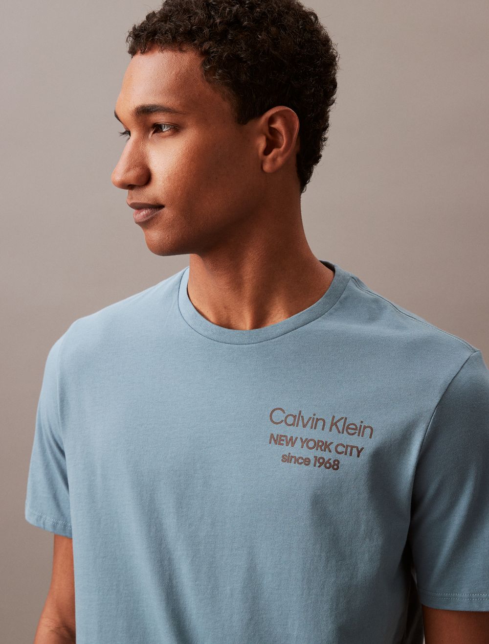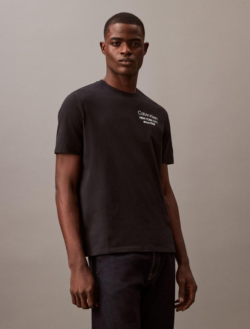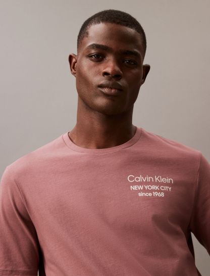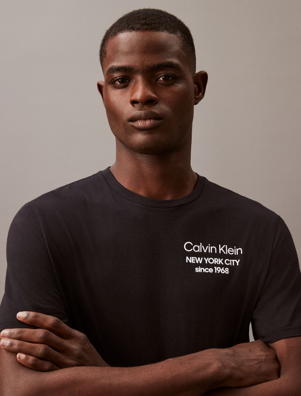 Made from 100% cotton, this t-shirt is cut in a classic fit for comfortable wear. Designed with short sleeves and a crewneck. Styled with a Calvin Klein logo graphic at the upper chest.- Calvin Klein logo graphic at the upper chest