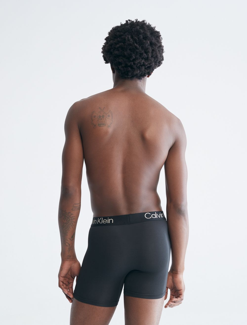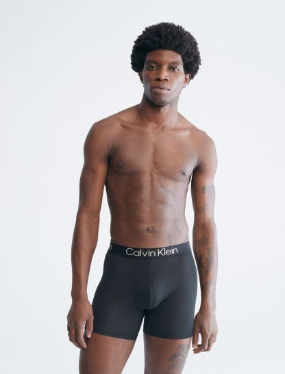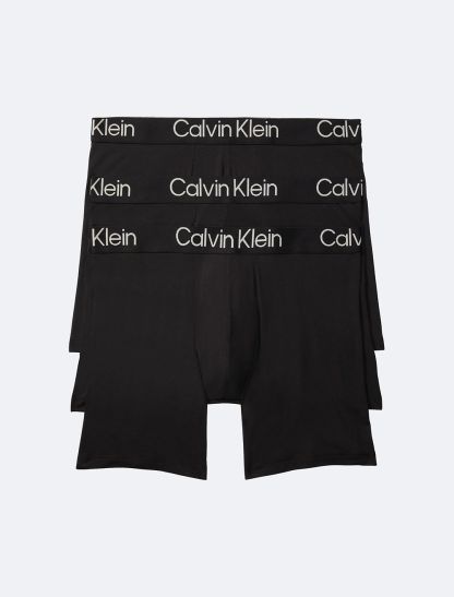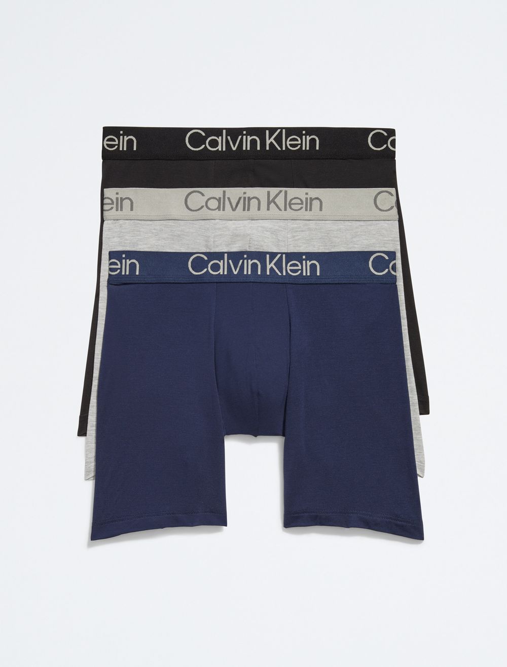 Breathable ultra-soft modal stretch. Crafted from responsibly sourced modal, these Calvin Klein boxer briefs are designed with a super soft recycled logo waistband, a sleek contoured pouch and a turnback hem for a clean finish. Comes in a 3-pack.- Responsibly sourced modal with added breathability and long lasting fibers
