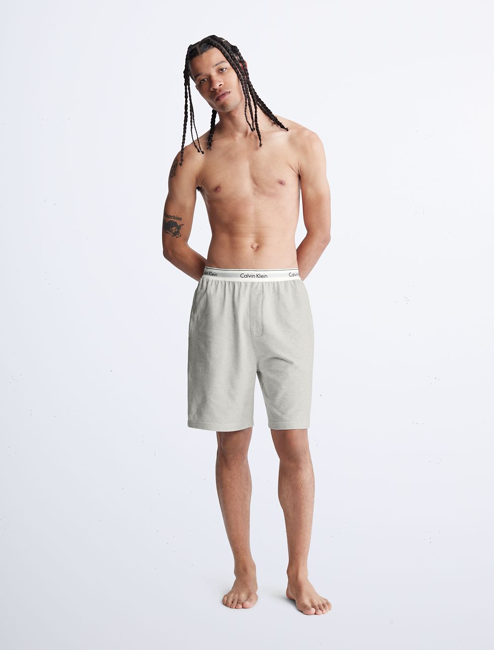 Our most iconic program, rooted in our past and reimagined for our future. These Calvin Klein modern cotton lounge sleep shorts are made from soft cotton and recycled polyester jersey for reduced environmental impact. Finished with a classic logo waistband, side pockets and seaming details.- Soft cotton jersey with recycled polyester for reduced environmental impact