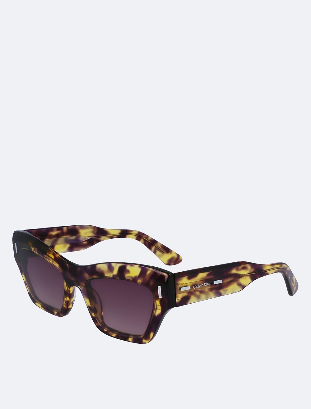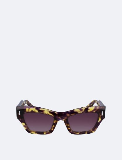 An avant-garde expression. These butterfly sunglasses feature curved, smooth shaping in acetate with CK logo styling at the temples. Made with 100% uva/b sun protection tinted lenses.- Smooth, angular frame