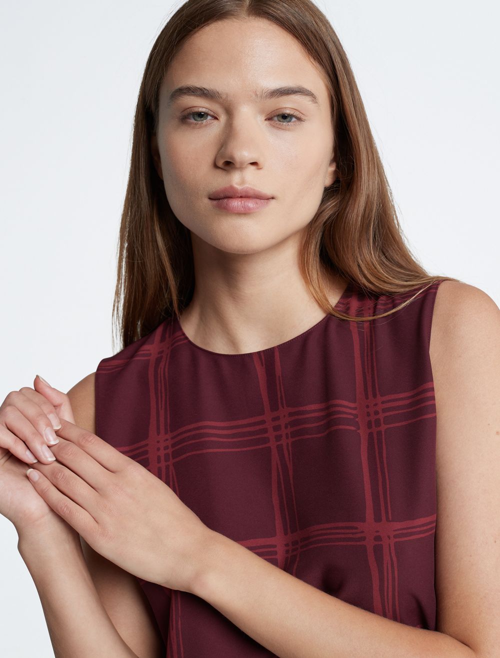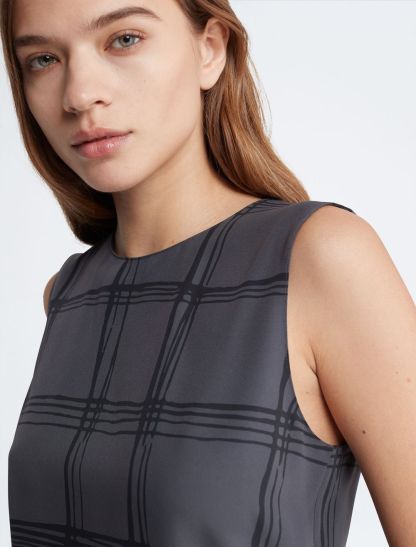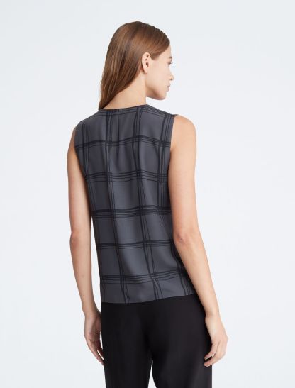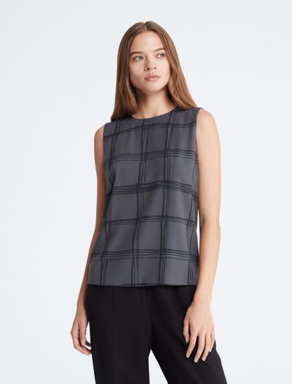 Embodying elevated chic, this sleeveless top is designed with a check pattern. Detailed with a clasp closure at the back and crafted with stretch for an effortless fit.- Check pattern