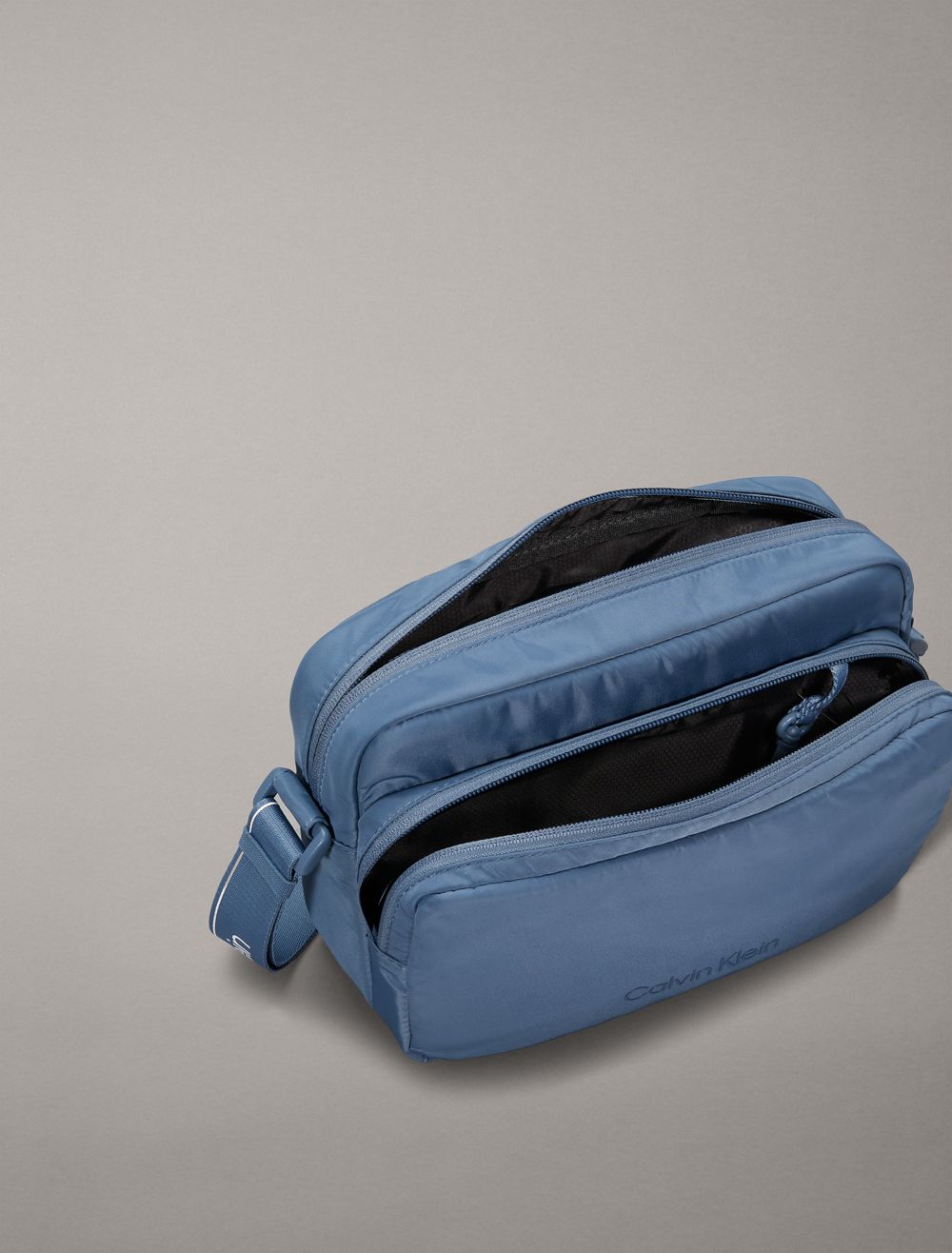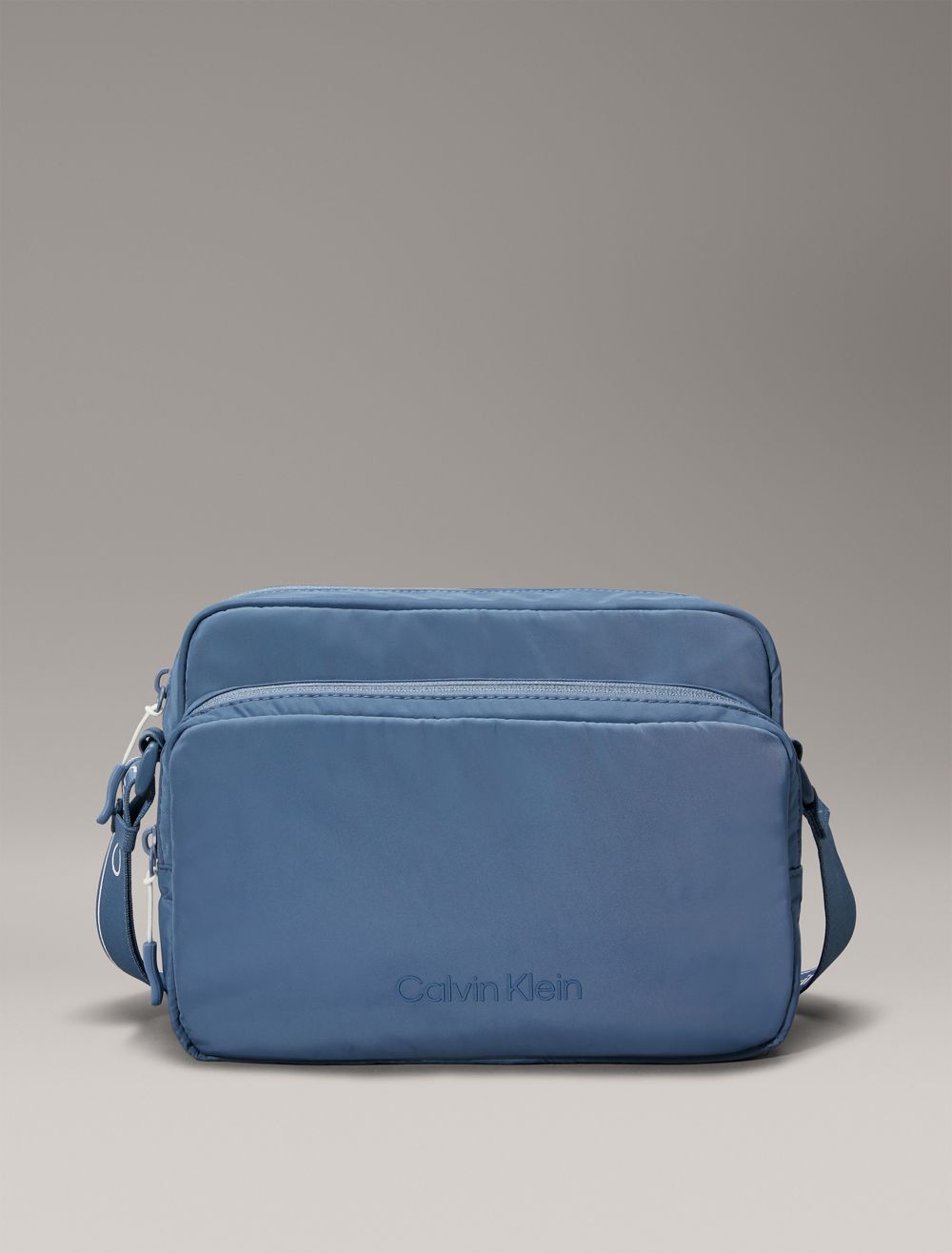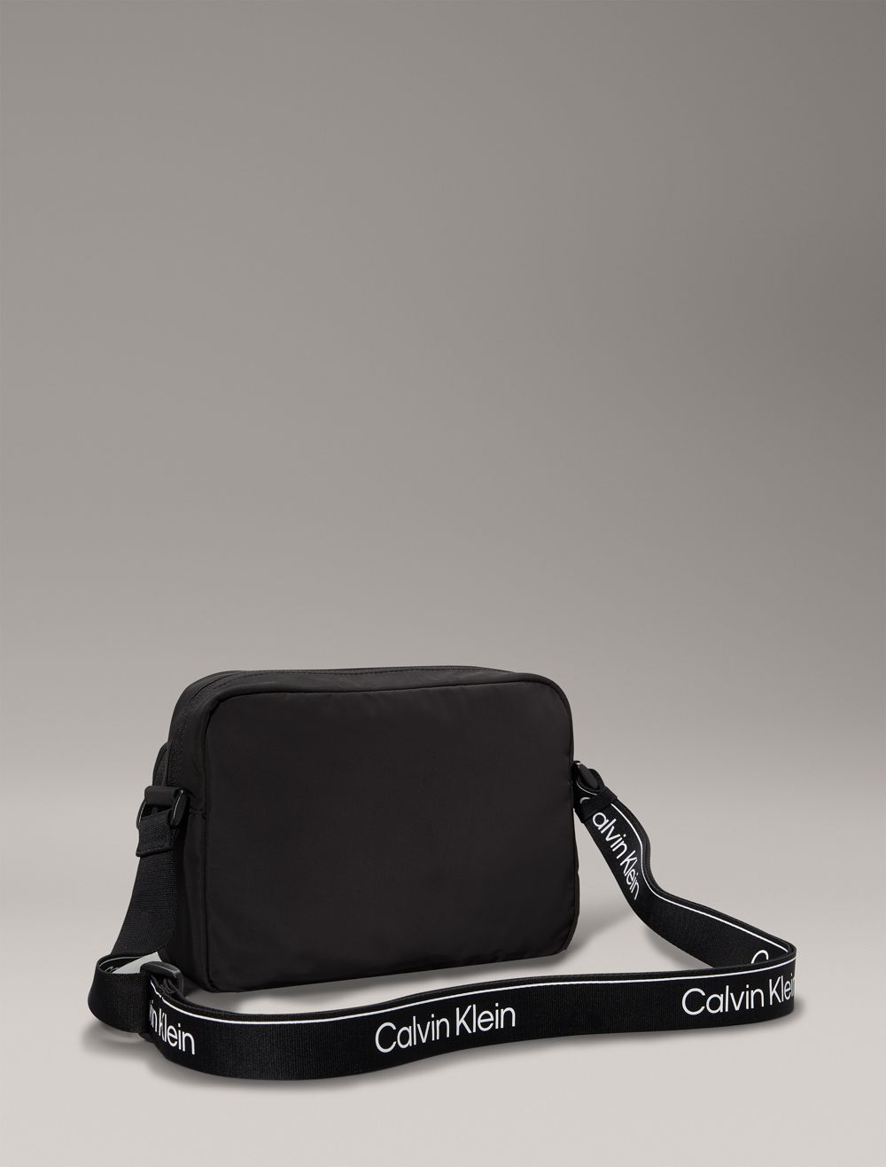 Crafted from 100% recycled polyester, this camera bag is made with reduced environmental impact. Features a main compartment with a zip closure and a front zip pocket. Styled with an adjustable shoulder strap for a personalized fit. Finished with Calvin Klein logos along the shoulder strap and a tonal logo at the front pocket.- Adjustable logo shoulder strap