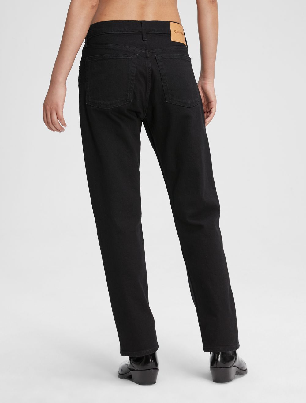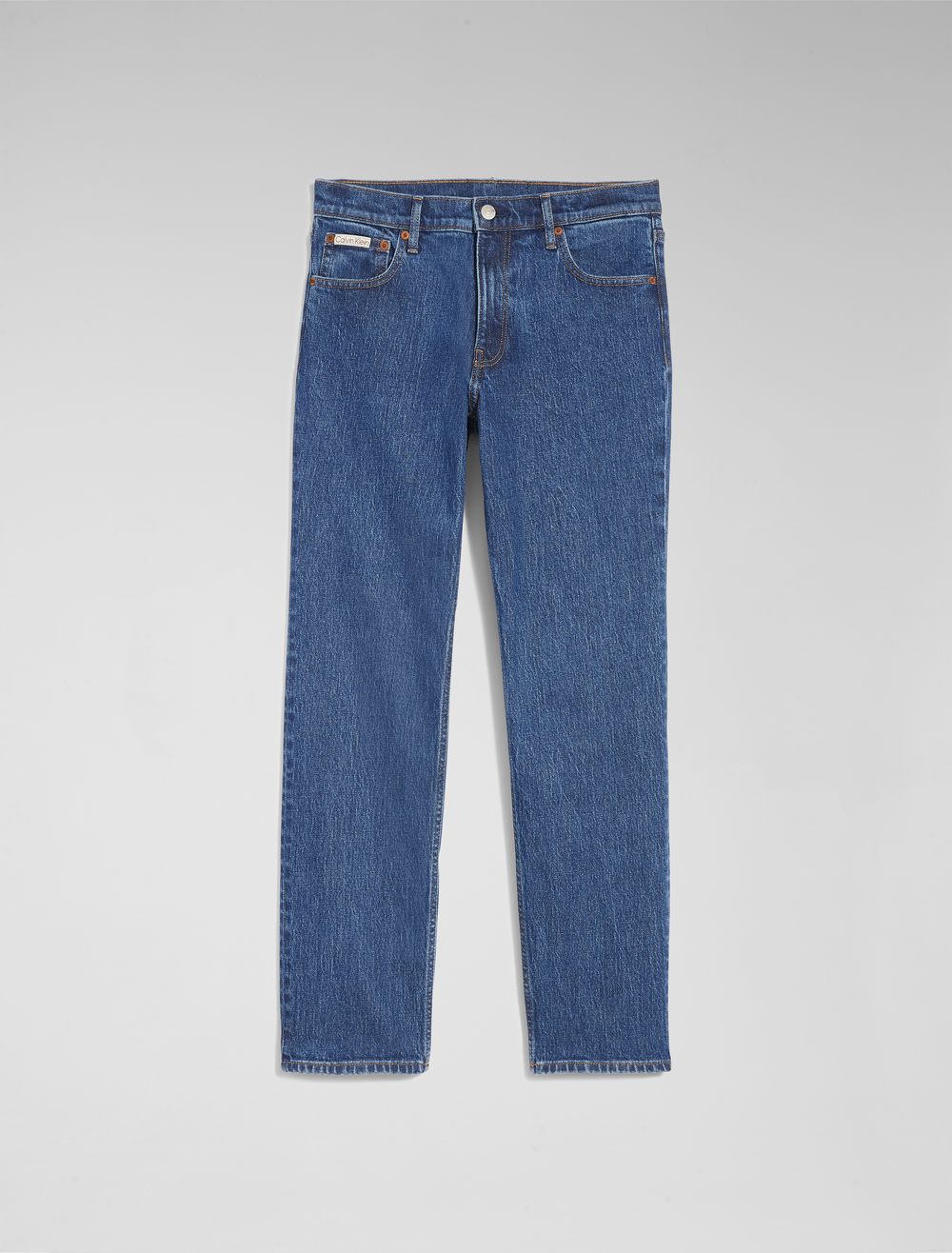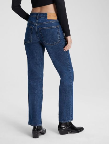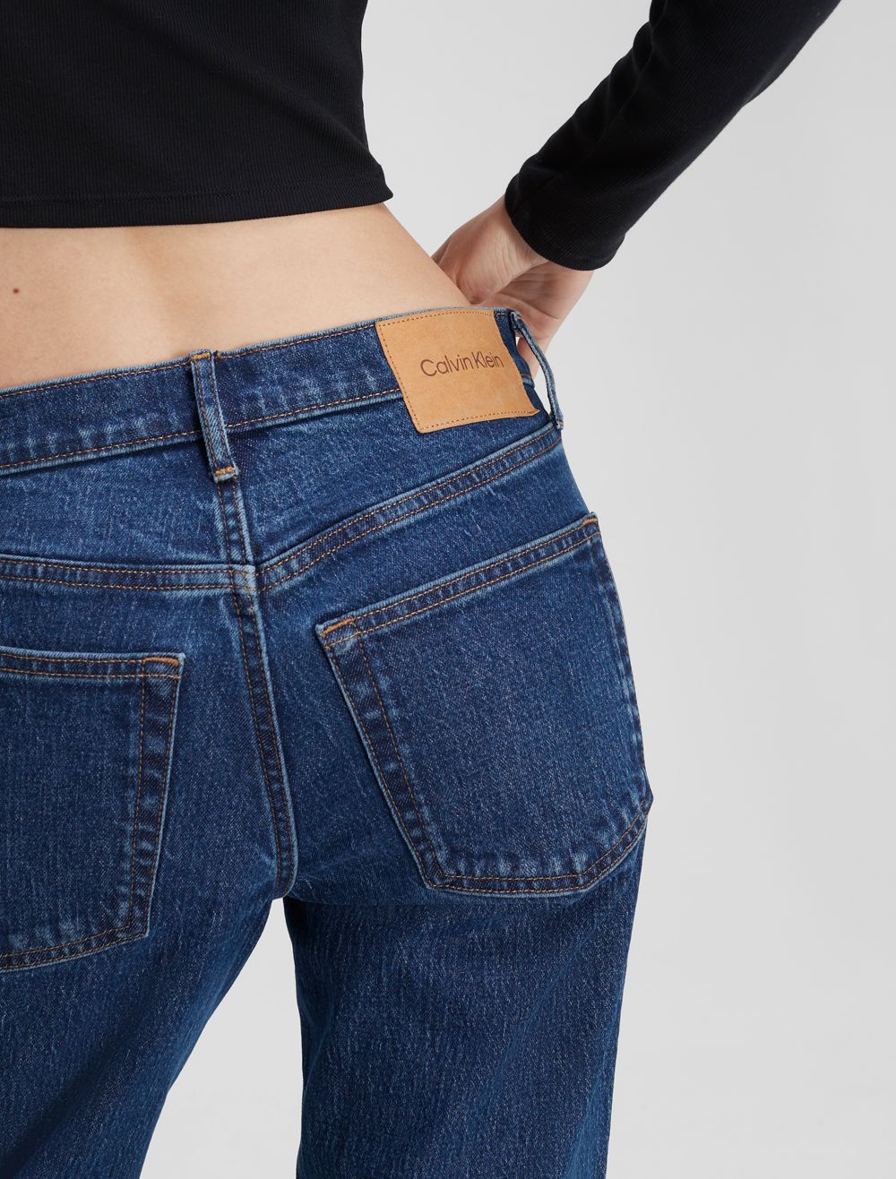 Styled in a straight leg silhouette with a mid rise waist, these jeans are made from a cotton stretch blend for easy, comfortable wear. Designed with a zip fly and a top button closure. Features classic 5-pocket styling and finished with a CK logo patch at the back waist.- Extra soft cotton stretch denim for a flexible feel and all-day comfort