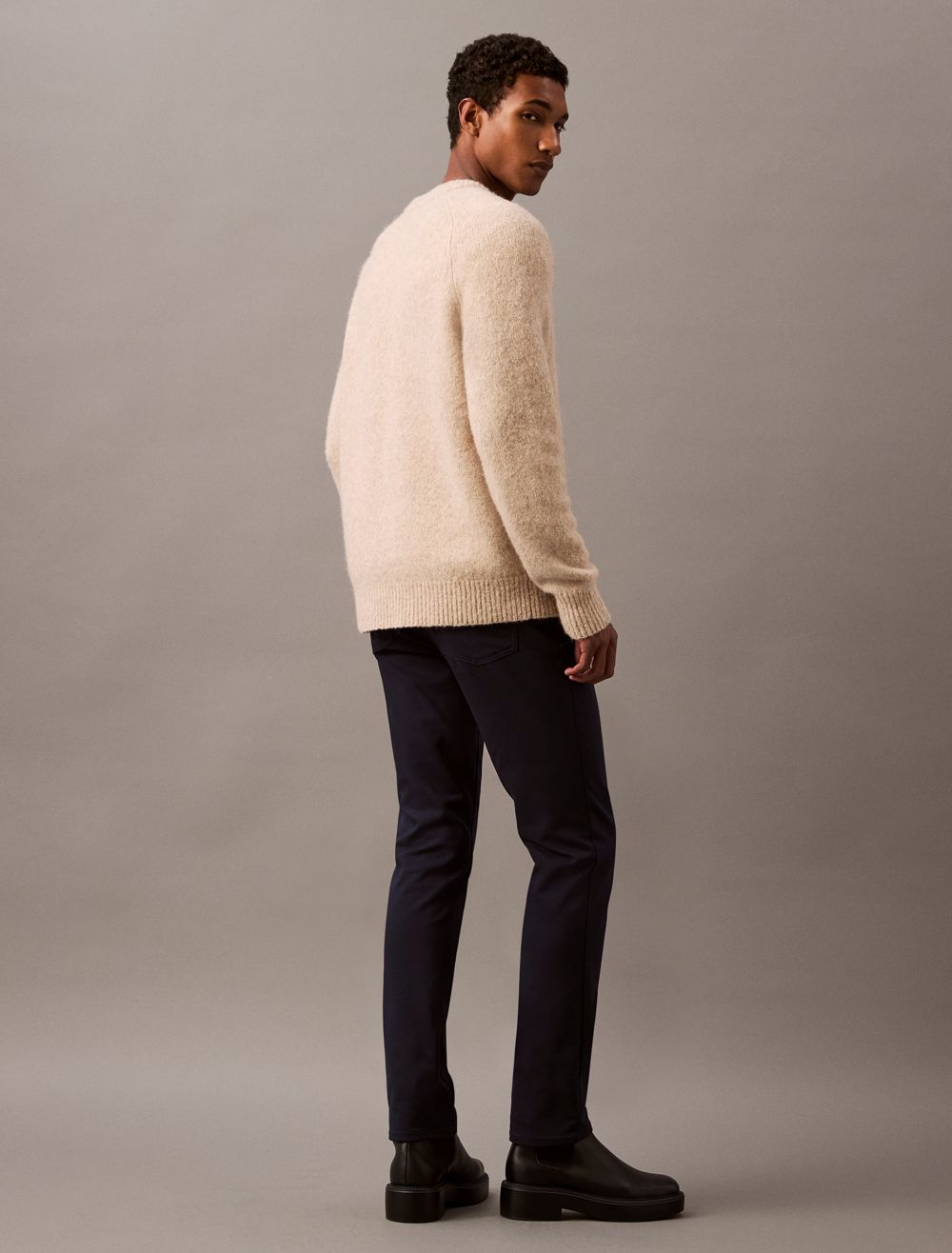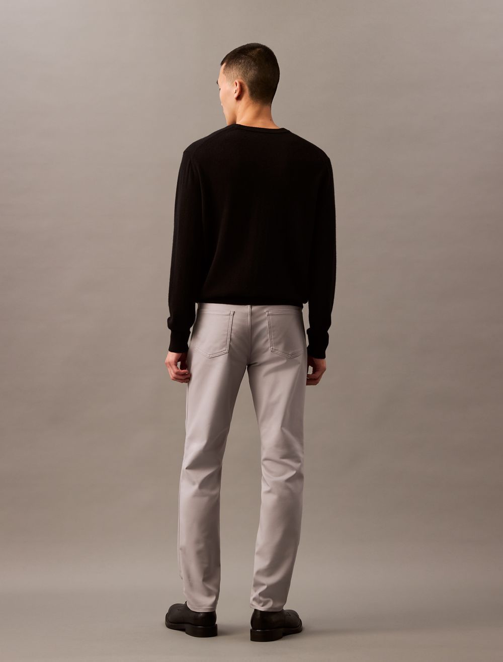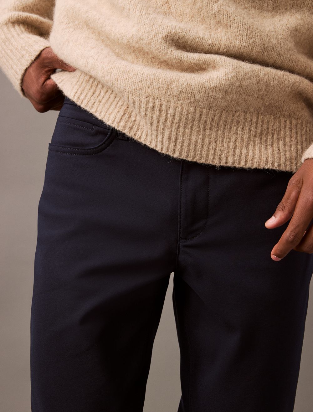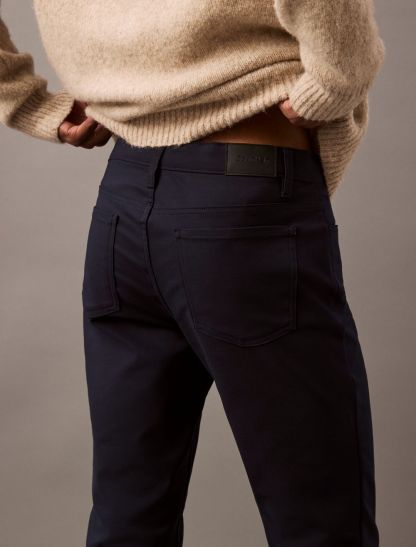 Crafted with stretch, these woven pants are made for an easy, flexible fit. Made with wrinkle resistant fabric, perfect for those on-the-go. Features classic 5-pocket styling and finished with a Calvin Klein logo patch at the back waist.- Provides ultimate comfort by stretching as you move