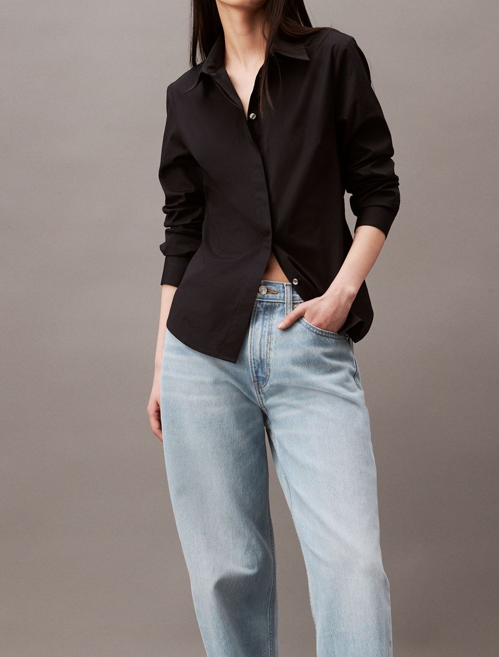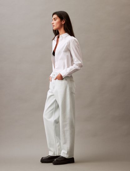 Cut in a loose fit, these jeans are a relaxed style perfect for casual outfits. Fitted with a high rise waist and made with classic 5-pocket styling. Finished with a CK logo patch at the back waist.- Loose, relaxed fit