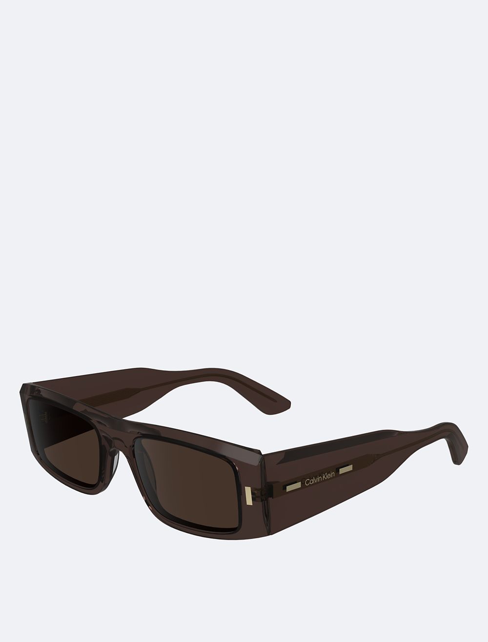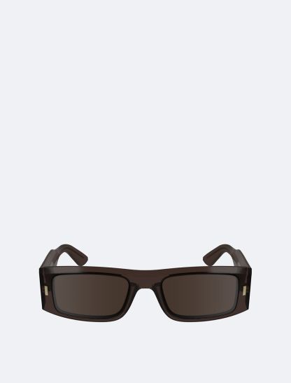 A bold, sculpted silhouette designed with a rectangle frame. These sunglasses are crafted from smooth acetate and made with 100% uva/b sun protection tinted lenses. Detailed with Calvin Klein logo styling at the temples.- Rectangle frame