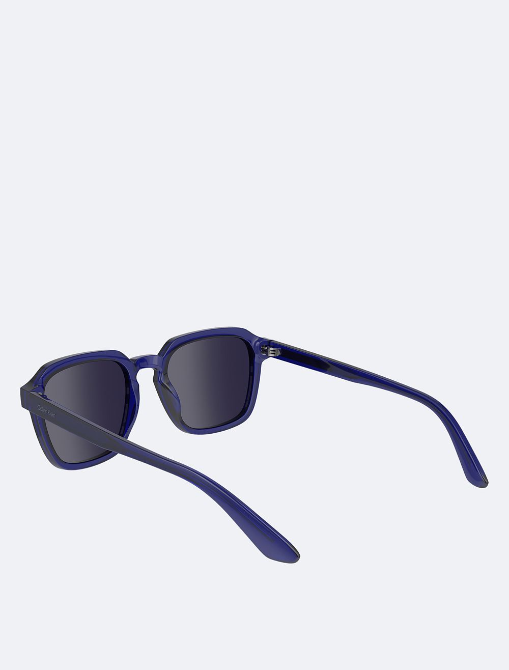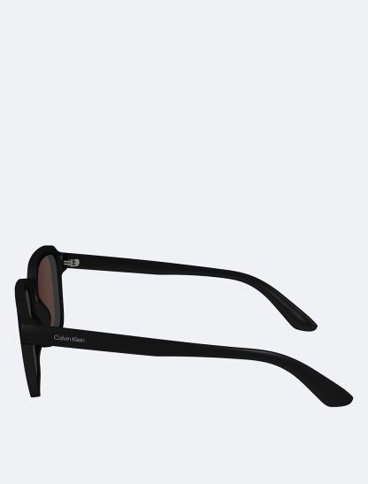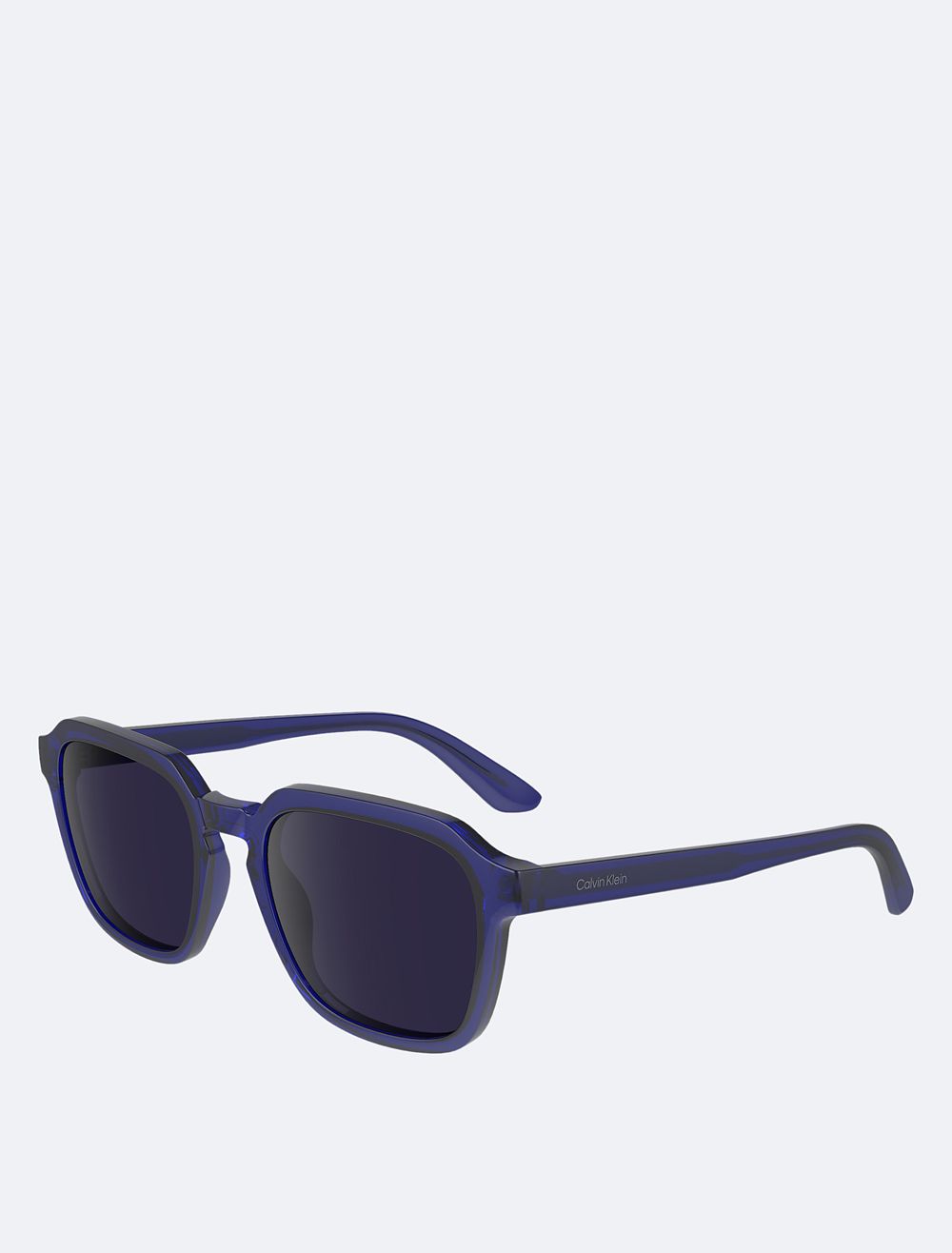 Structured, angular shape in a classic rectangle frame. Crafted from smooth acetate and made with 100% uva/b sun protection tinted lenses. Detailed with Calvin Klein logo styling at the temples.- Rectangle frame