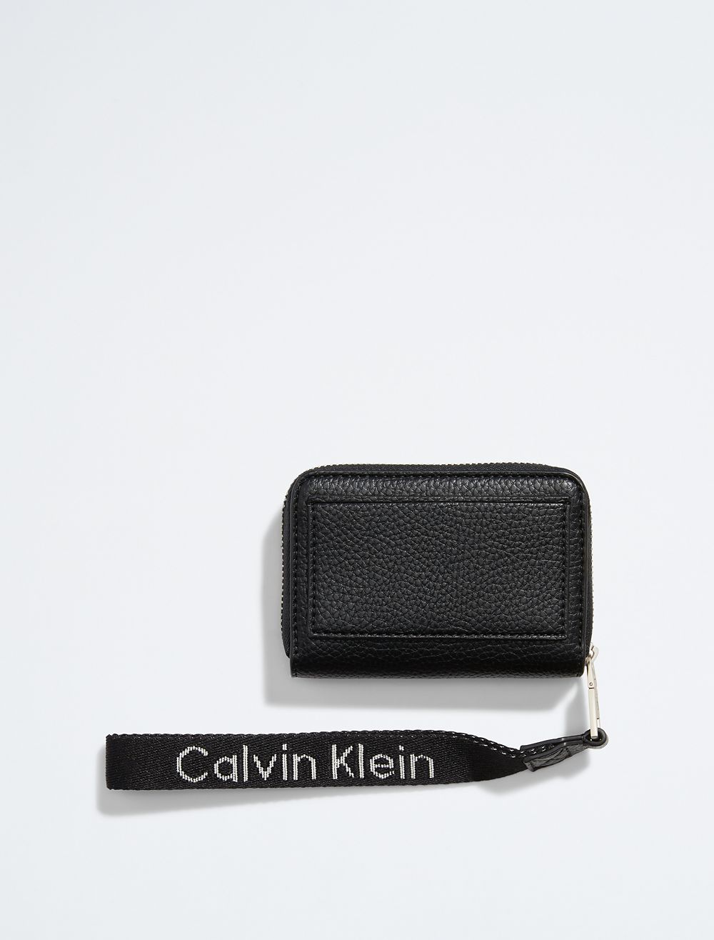 A wristlet styled with an interior accordion pocket design. Made with a full zip closure and a wrist strap. Features a CK logo styling along the wrist strap and an embossed CK monogram logo at the front.- Accordion interior pockets