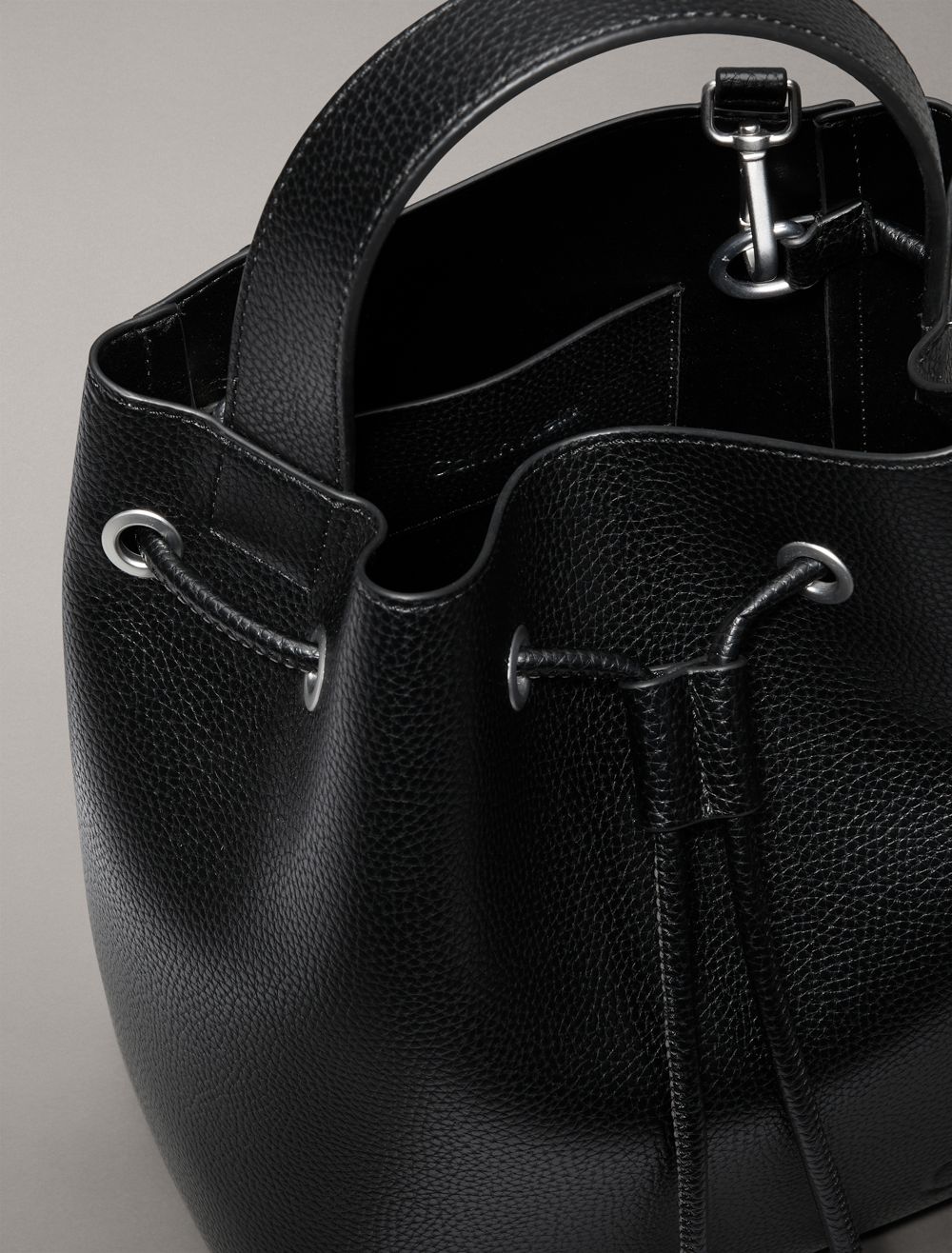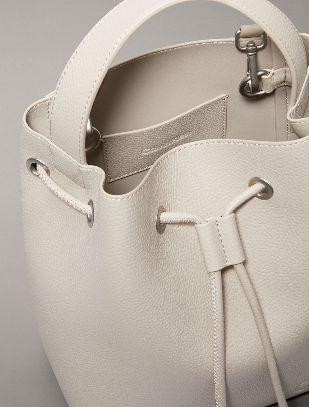 A versatile essential for everyday wear, this saddle bag is made with a top handle and a drawstring closure. Designed with an adjustable shoulder strap for a personalized fit. Finished with CK logo styling along the shoulder strap and a CK monogram logo detail at the front.- Top handle