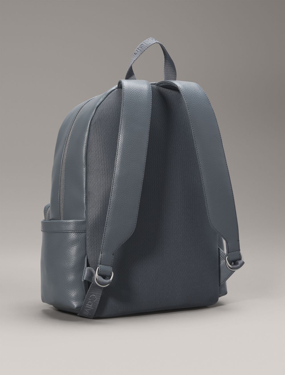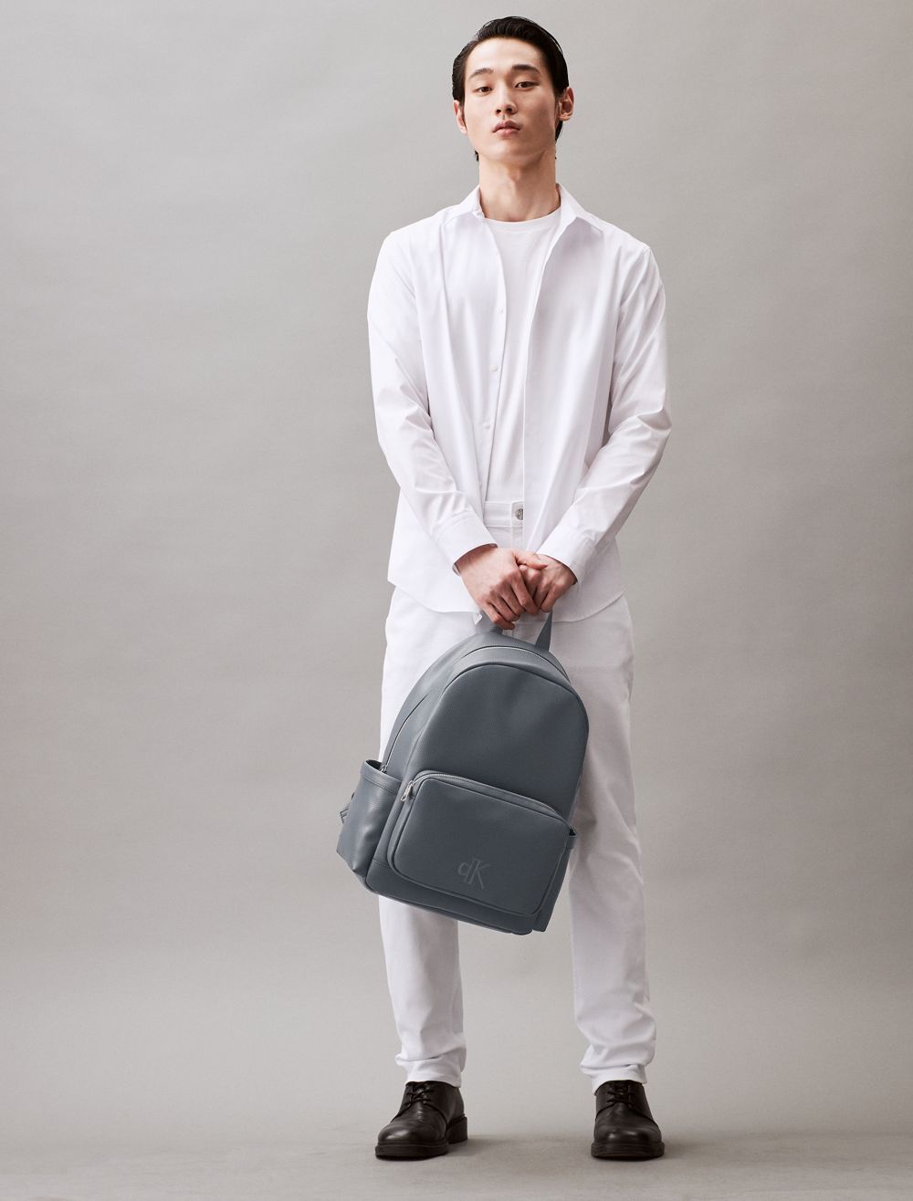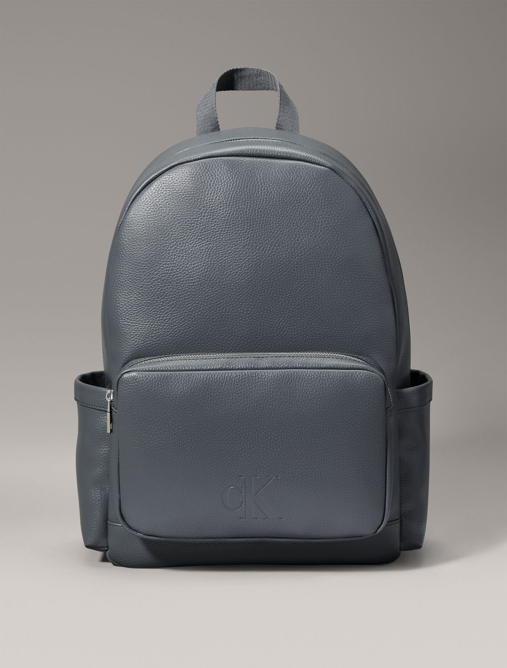 Crafted from 100% faux leather, this campus backpack is a classic everyday essential. Made with multiple compartments and pockets at both sides for maximum storage. Designed with a top handle and adjustable shoulder straps. Finished with an embossed CK monogram logo at the front pocket.- Full zip closure at the main compartment