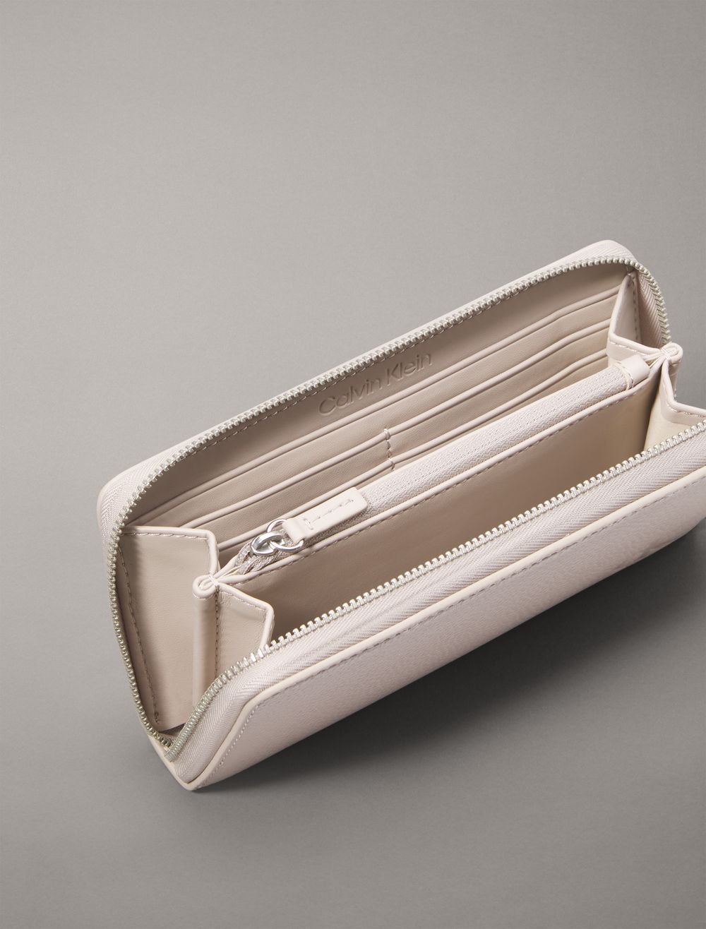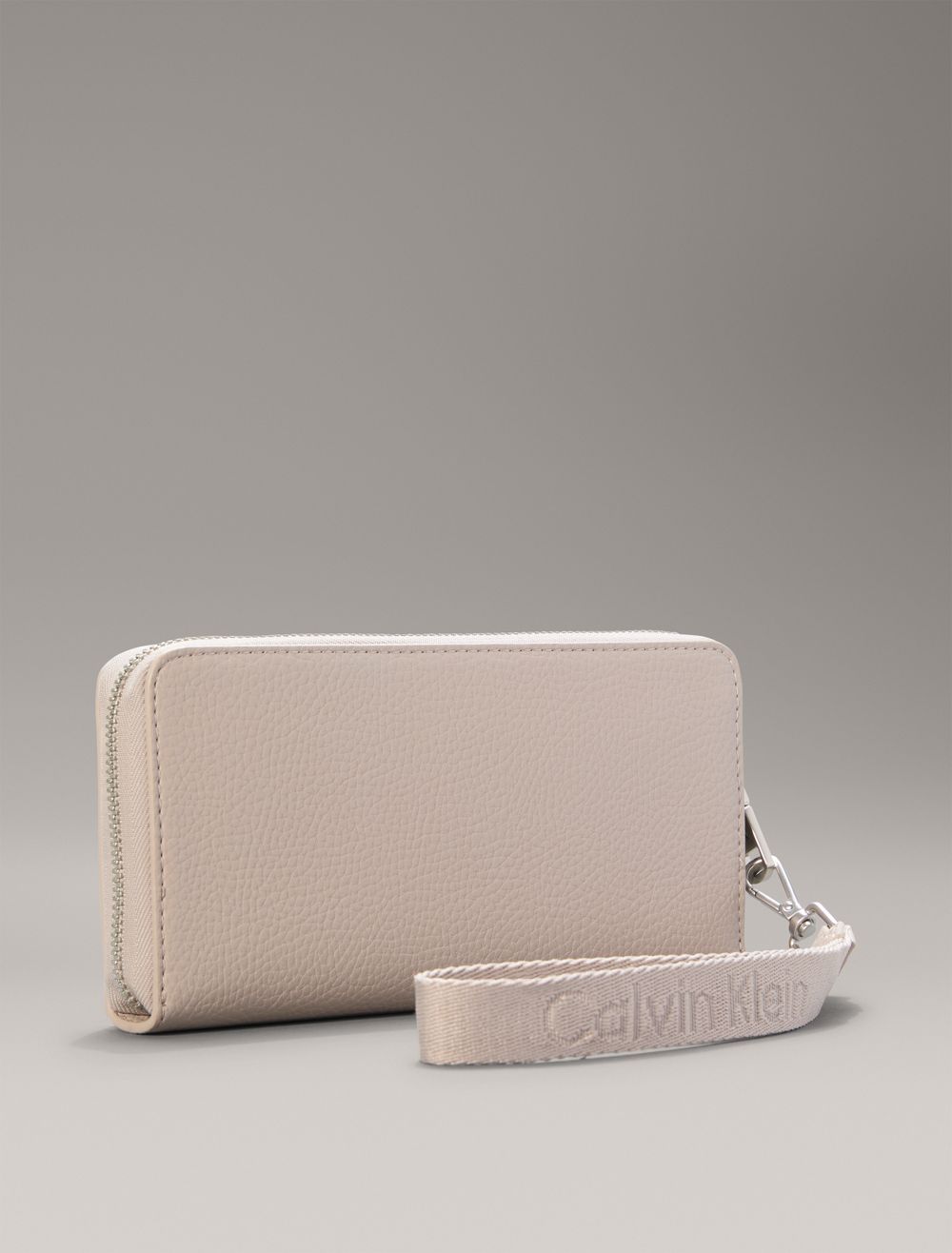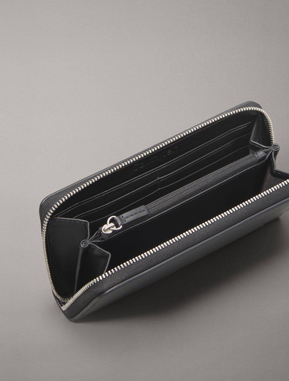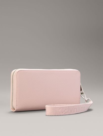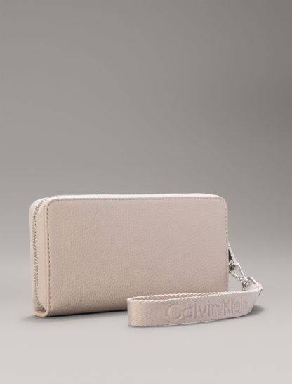 A versatile essential for everyday wear, this wristlet is designed with interior accordion pockets fitted with card slots and an interior zip pocket. Made with a full zip closure and a wrist strap. Features CK logo styling along the wrist strap and an embossed CK monogram logo at the front.- Zip-around closure
