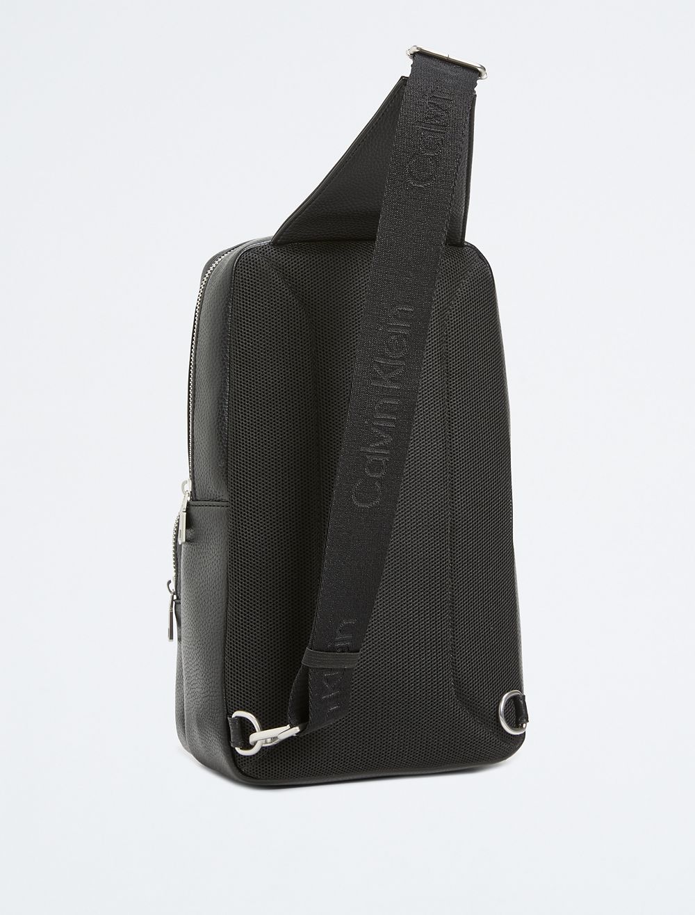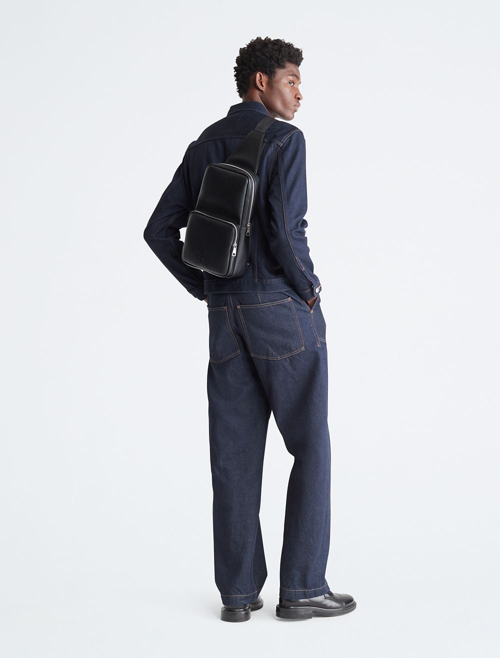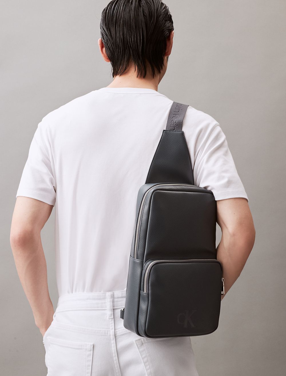 A versatile essential for everyday wear, this sling bag features a main compartment with a front zip pocket for maximum storage. Made with an adjustable shoulder strap for a personalized fit and crossbody wear. Finished with Calvin Klein logo styling along the shoulder strap and a debossed CK monogram logo detail at the front.- Zip closure at the main compartment + front zip pocket