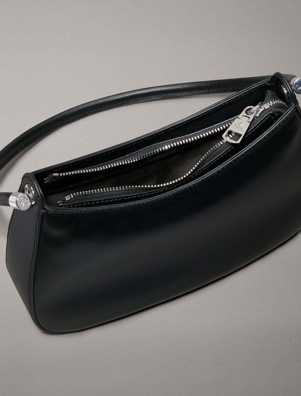 Crafted from 100% faux leather, this shoulder bag features solid, minimal styling. Designed with a zip closure along the top detailed with an embossed CK monogram logo at the side. A simple silhouette, this bag is perfect for holding essentials on your evening out.- Zip closure at the top