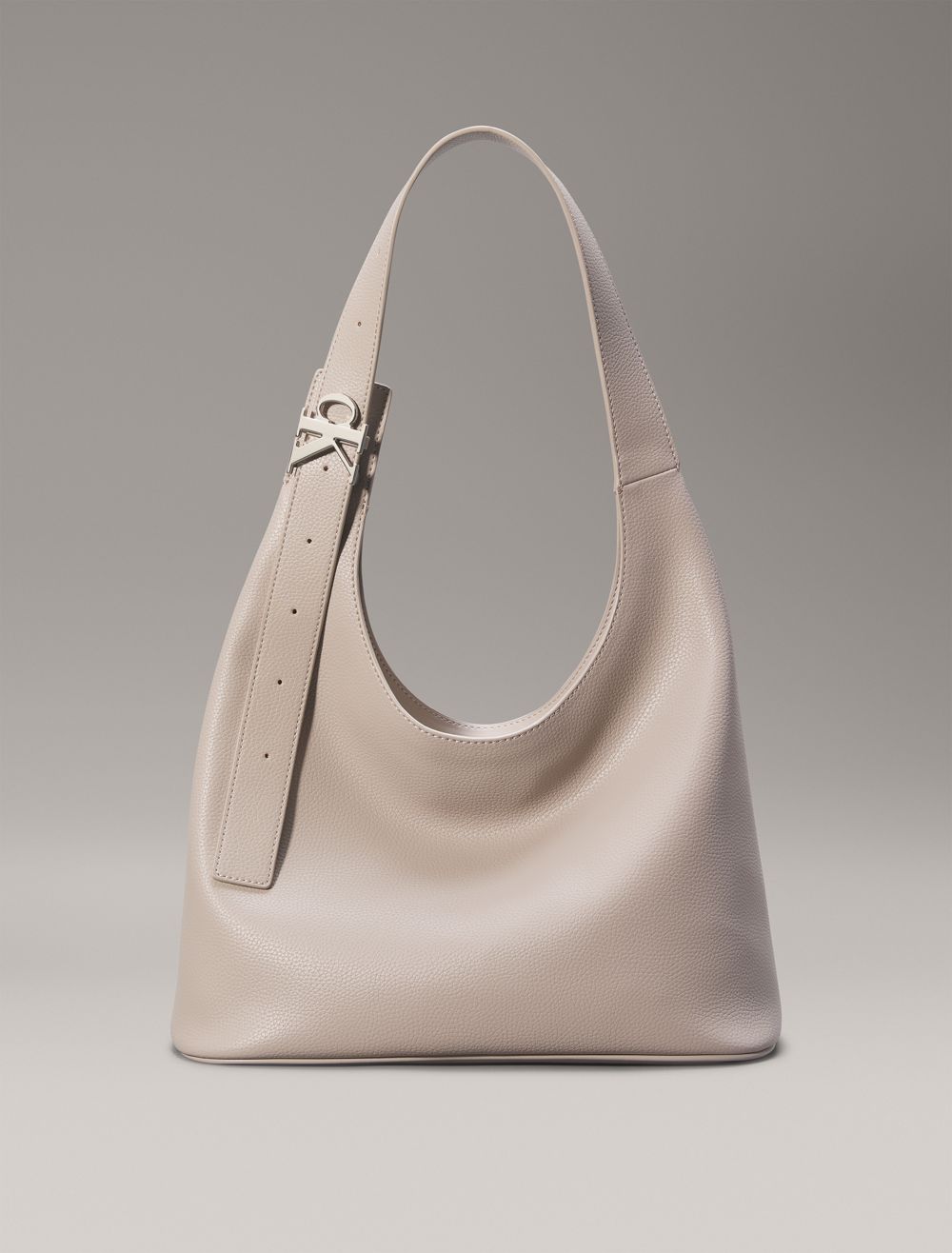 Designed with curved shaping, this shoulder bag features a versatile silhouette that is both modern and chic. Made with an adjustable shoulder strap for personalized wear. Finished with a metal CK monogram logo buckle at the shoulder strap.- Curved shaping