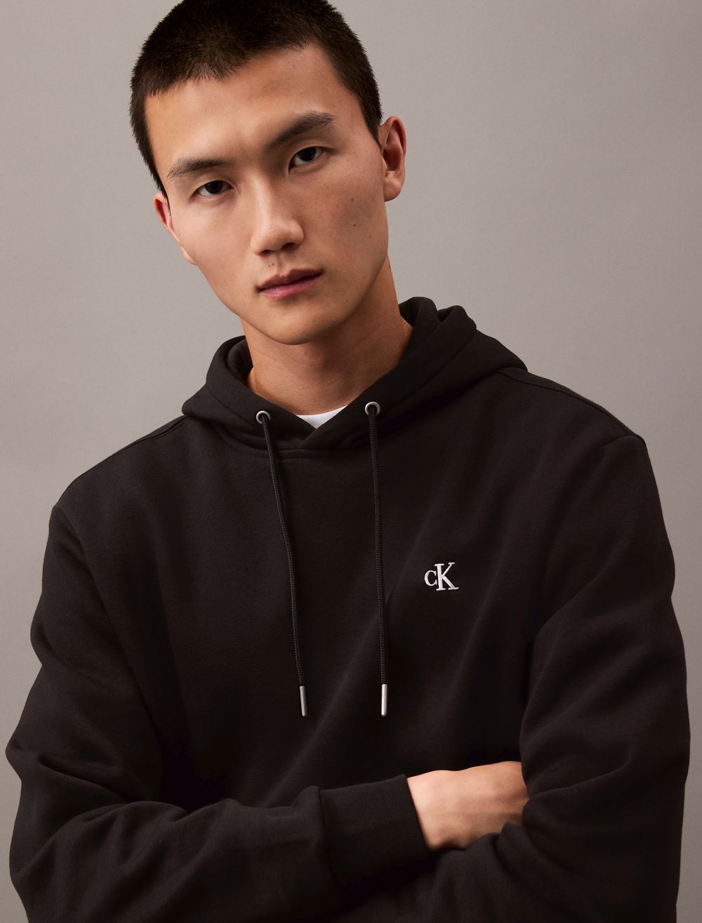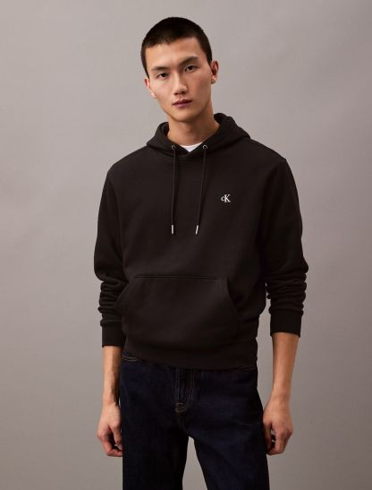 Made from a soft cotton blend, this fleece hoodie offers ultimate comfort for everyday wear. Designed with long sleeves and a kangaroo pocket at the front. Finished with CK monogram logo embroidery at the upper chest.- Long sleeves + crossover hood