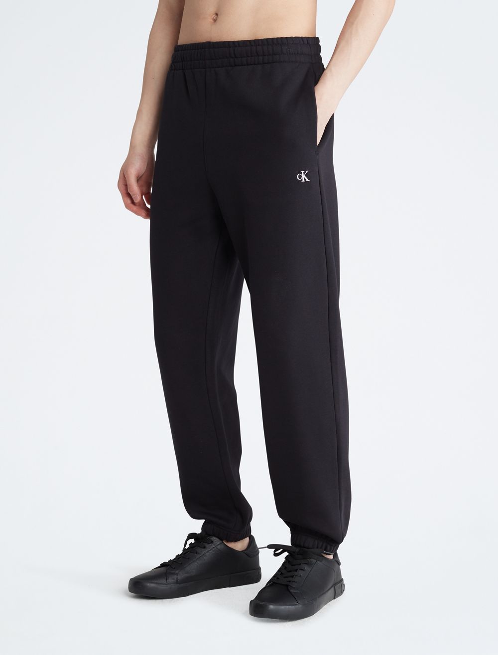 Crafted from soft cotton blend fleece, these joggers offer exceptional comfort with added warmth. Styled with elastic waist and cuffs for flexible wear. Finished with archive-inspired logo embroidery at the upper leg.- Elastic waist + cuffs