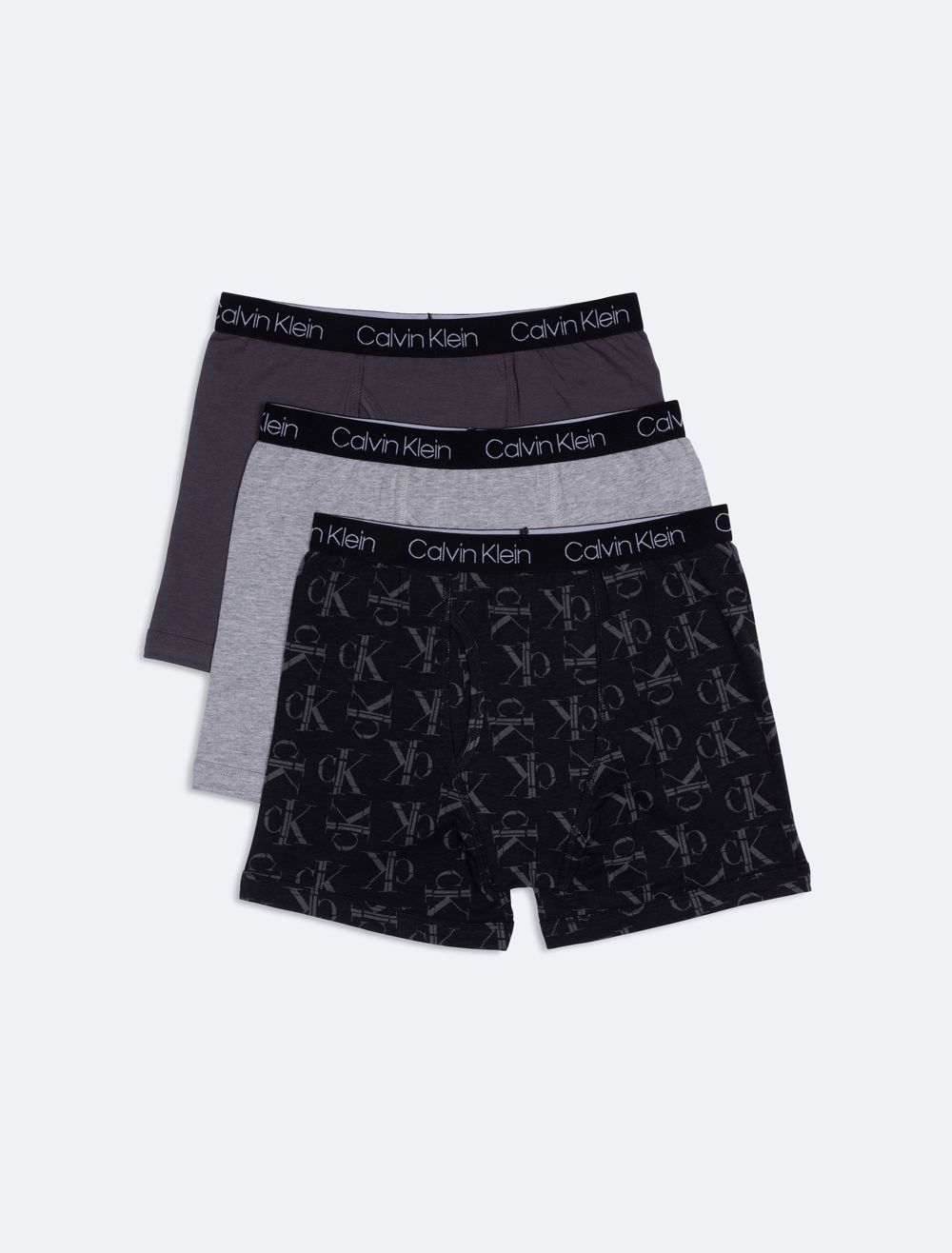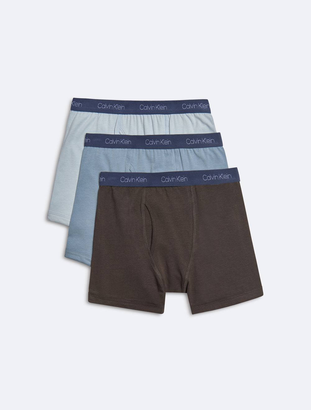 A 3-pack of CK boys briefs in assorted designs, made from cotton stretch fabric. Featuring signature elasticated logo waistbands, functional keyhole flys and seaming details.- Cotton stretch