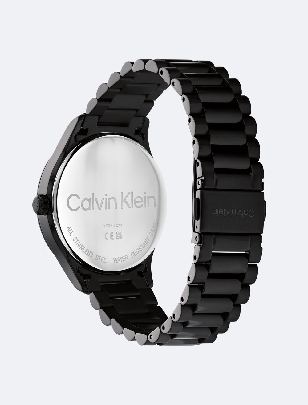 Iconic shapes for all. Understated, impactful design featuring a C-shaped texture on dial. Available on a linked bracelet with polished center links.- Black IP coated stainless steel case