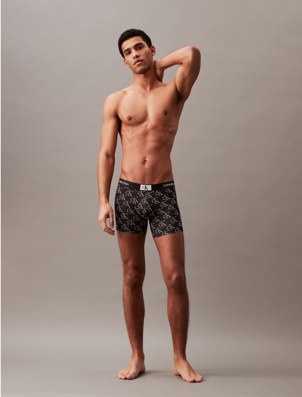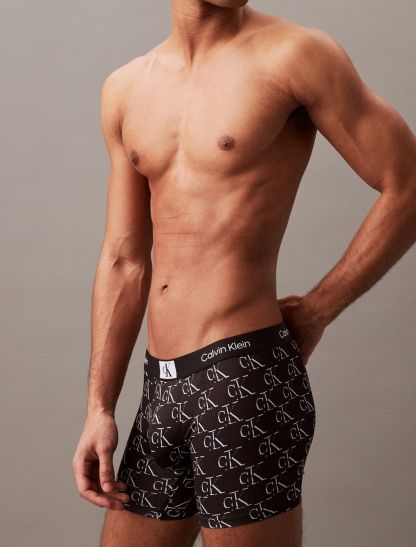 Amplified classics, Calvin Klein 1996 is a vibrant logo story featuring our iconic monogram framed in a box. A new approach to print and color with a distinct graphic language. This boxer brief is designed with a recycled microfiber stretch blend and repeating classic logos.- Silky recycled microfiber blend for a sustainable design