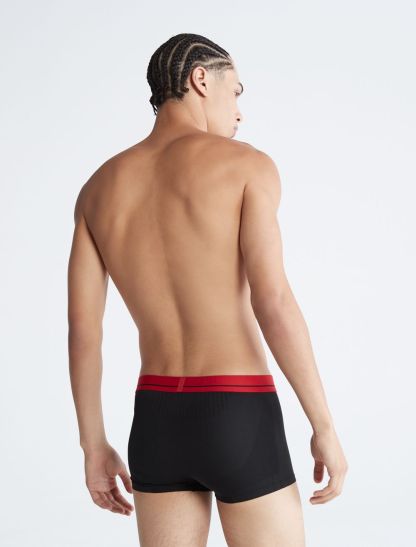 Tech-inspired and innovative, capped with an iconic logo waistband. This 3-pack microfiber Calvin Klein low rise trunk set offers superior comfort at the support zones, a contoured pouch and mesh trim for premium breathability.- Silky soft microfiber for maximum comfort and enhanced movement
