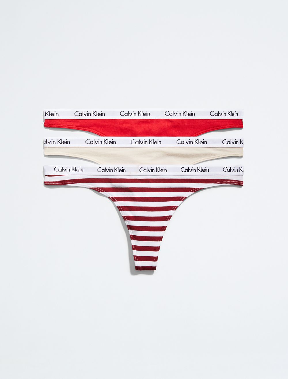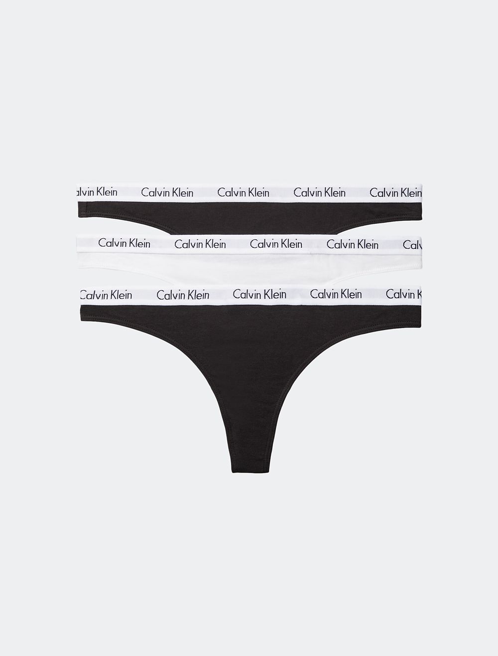 Classic and essential, these CK thongs come in a 3-pack and are crafted with extra soft cotton stretch for flexible comfort. Designed with a signature repeating logo elastic waistband, a fully lined gusset, minimal rear coverage and seaming details.- Assorted designs with iconic logo styling