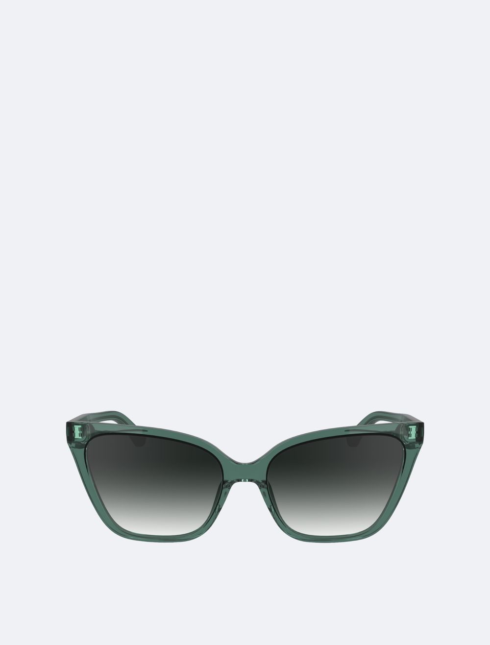 Made with a chic cat eye shape, these sunglasses are crafted from a plant-based resin material for reduced environmental impact. Features tinted lenses and 100% uva/uvb sun protection. Finished with CK logo styling at the temples.- Cat eye shape
