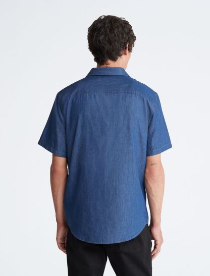 A refined silhouette with considered detailing, this woven shirt is cut in a regular fit with classic chambray cotton. Designed with an iconic monogram logo at the chest for an elevated and versatile Calvin Klein essential.- Soft cotton chambray for effortless, breathable comfort