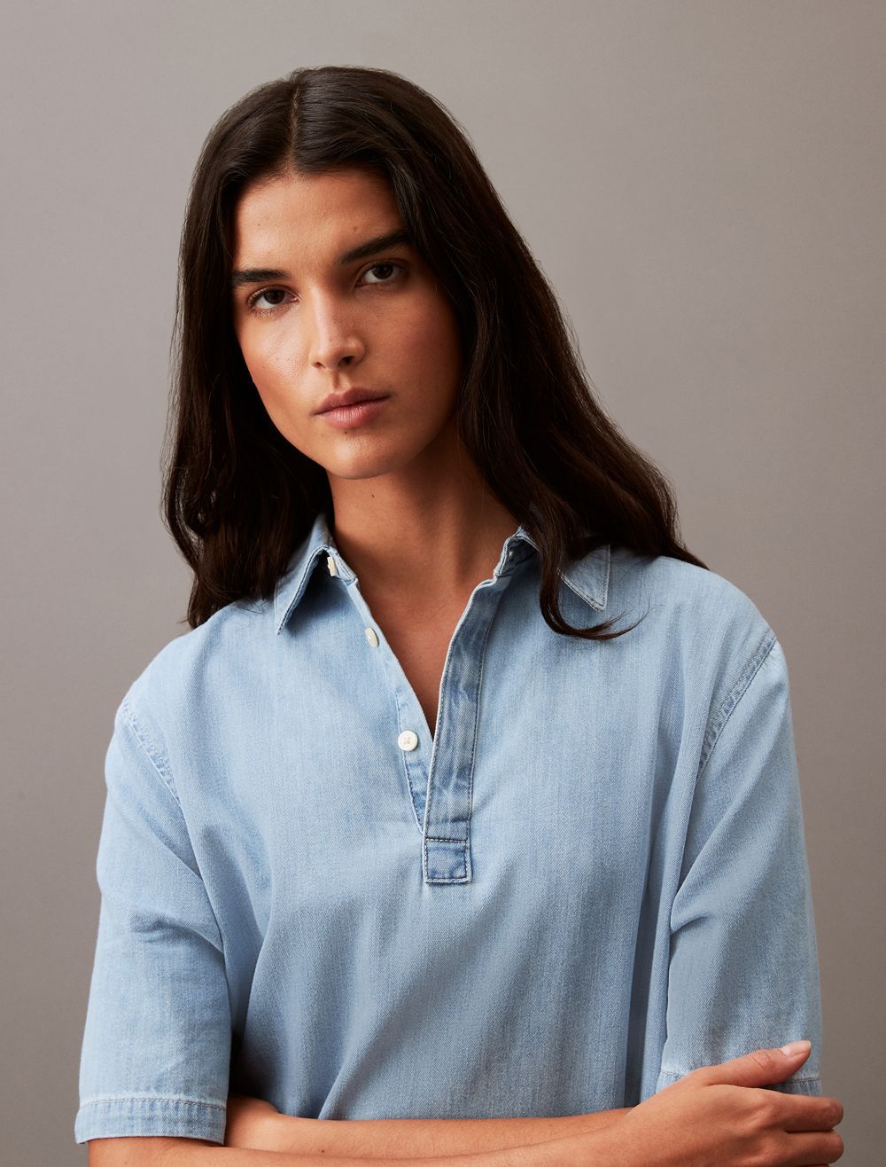 About the Chambray Mini Shirt Dress