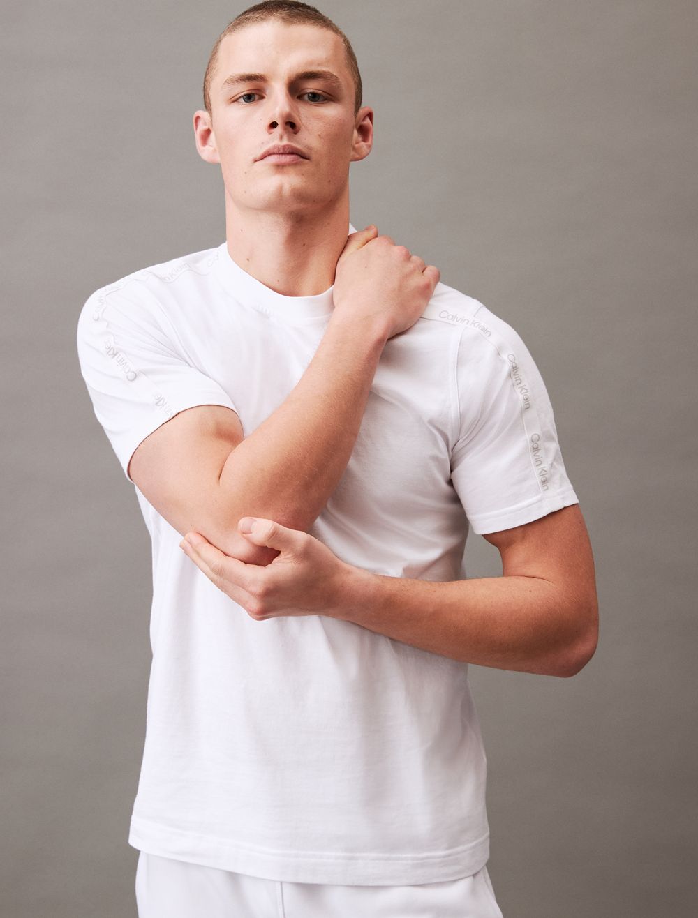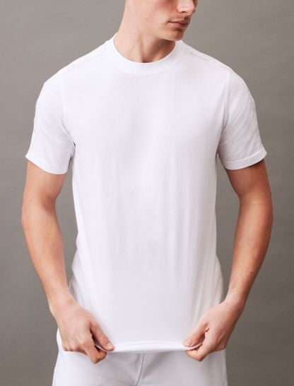 Adorned with signature logo tape along the sleeves, this CK Sport active t-shirt is designed for optimal comfort. Crafted from single jersey knit in breathable cotton with moisture wicking and clean, contoured seaming.- Single jersey knit in soft, breathable cotton