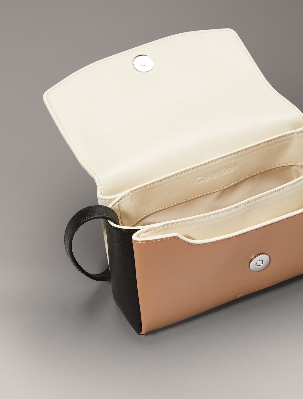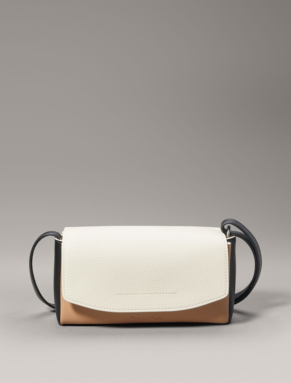 Created with a tonal color block design, this crossbody bag has a top flap that secures with a snap button closure. Made with a crossbody strap and finished with a debossed CK logo at the front.- Color block design