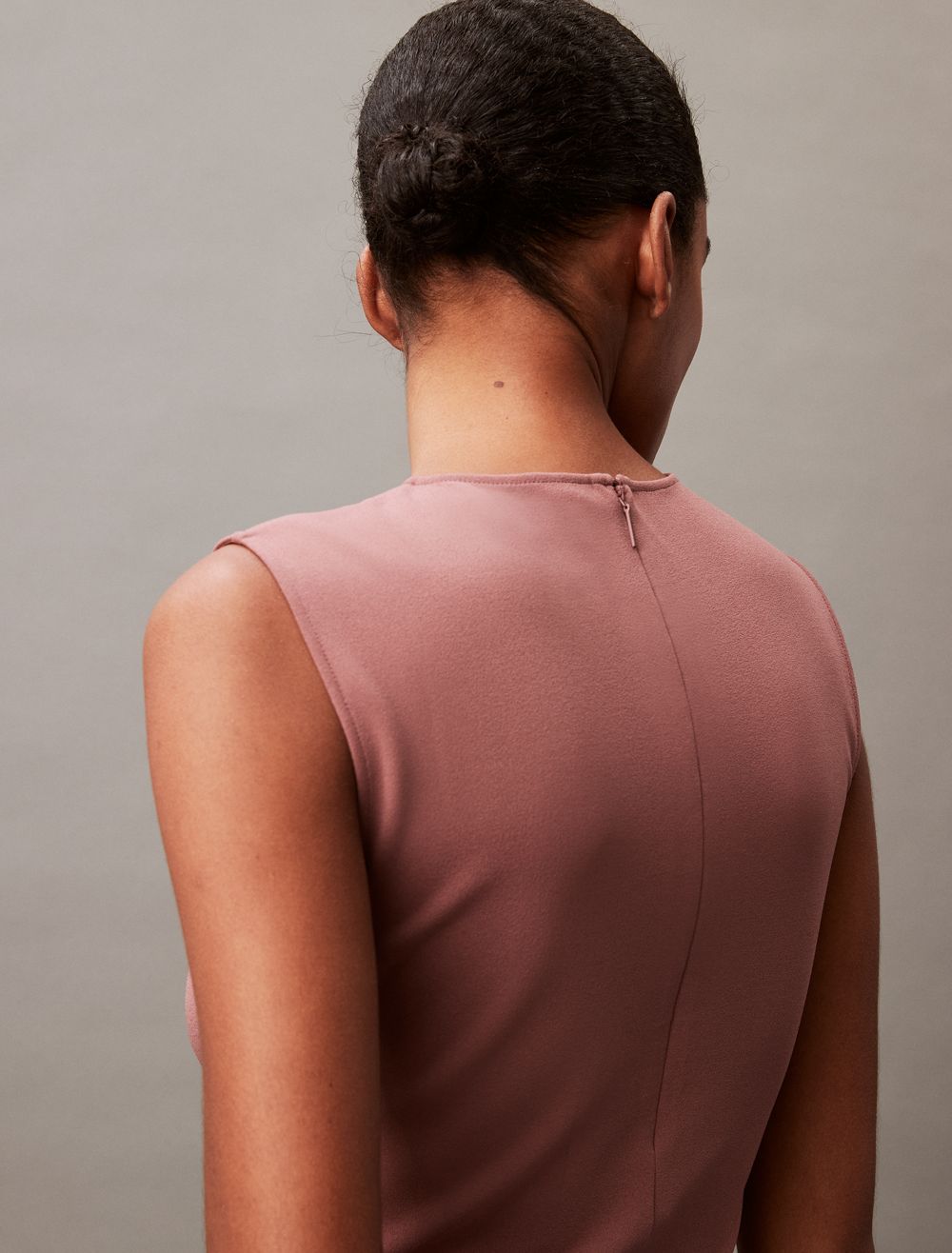 Cut from smooth stretch crepe, this dress has a slim, fitted silhouette. Defined with seaming accents and cut in a mini length. Detailed with a zip closure along the back.- Slim, fitted silhouette