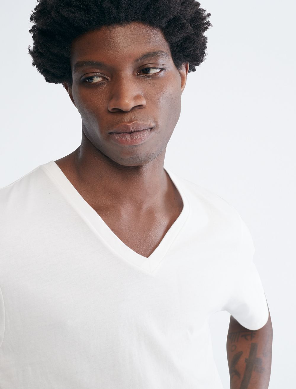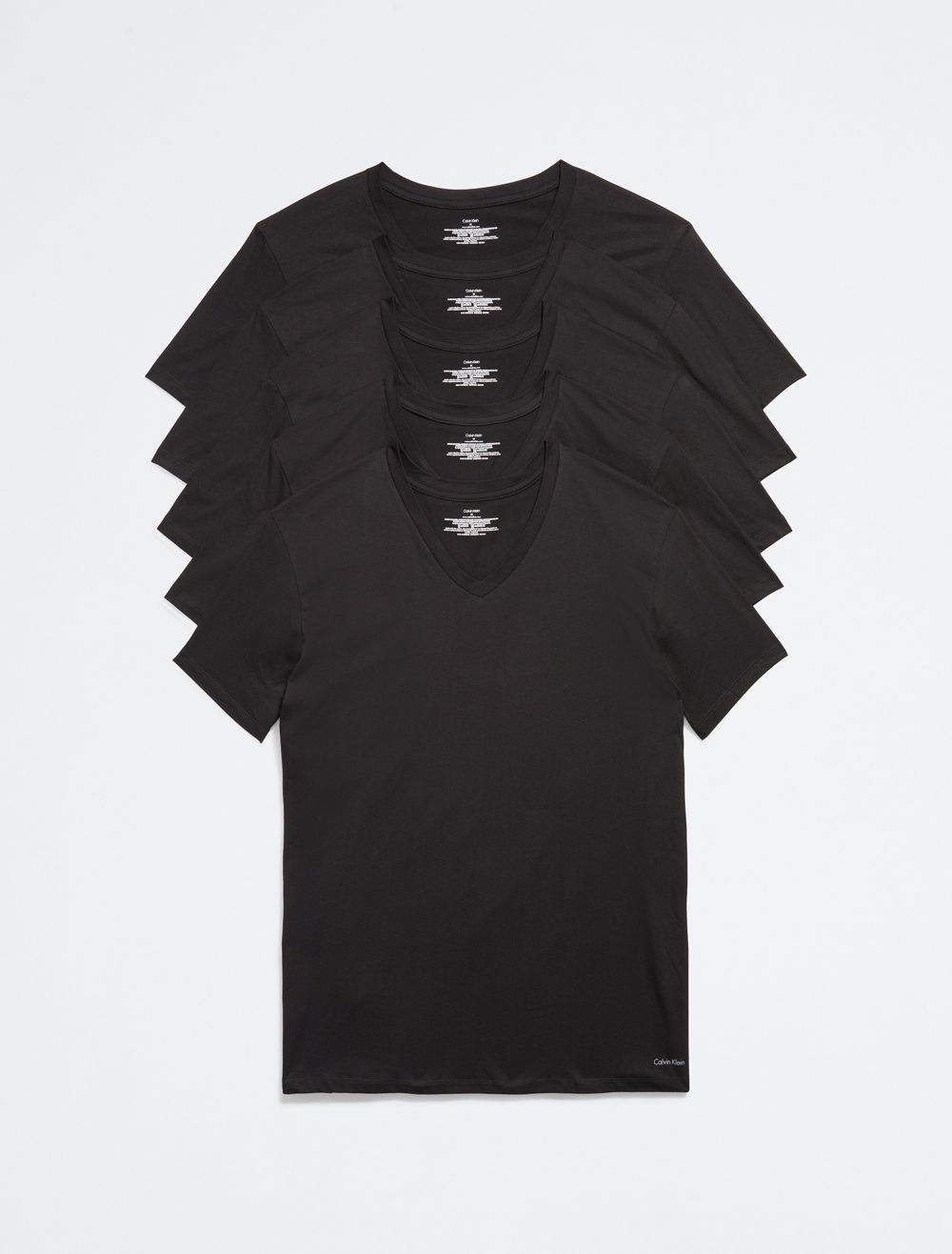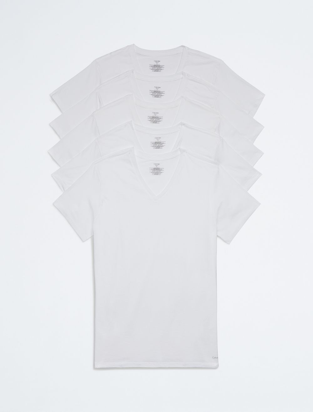 A signature classic, this essential t-shirt comes in a 5-pack and features a Calvin Klein Underwear logo at the hem with solid fabric. Designed with pure cotton for a soft hand and breathable comfort, finished with a v-neck and seaming details for an ideal layering undershirt.- Pure cotton for breathable, effortless comfort